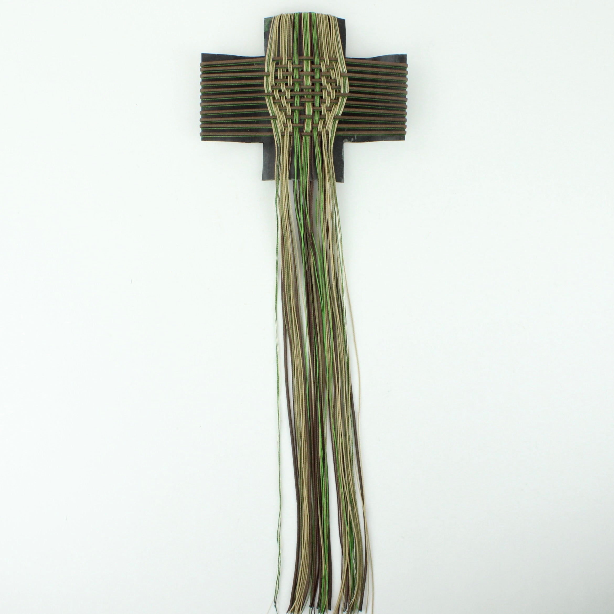 Gilly Sheffield’s corrugated iron crosses explore the interwoven nature of whānau and culture. Using iconic corrugated iron, long associated with sheltering New Zealand homes, and combining it with traditional weaving, she highlights the skills and knowledge passed down through generations across the diverse cultures that shape Aotearoa.