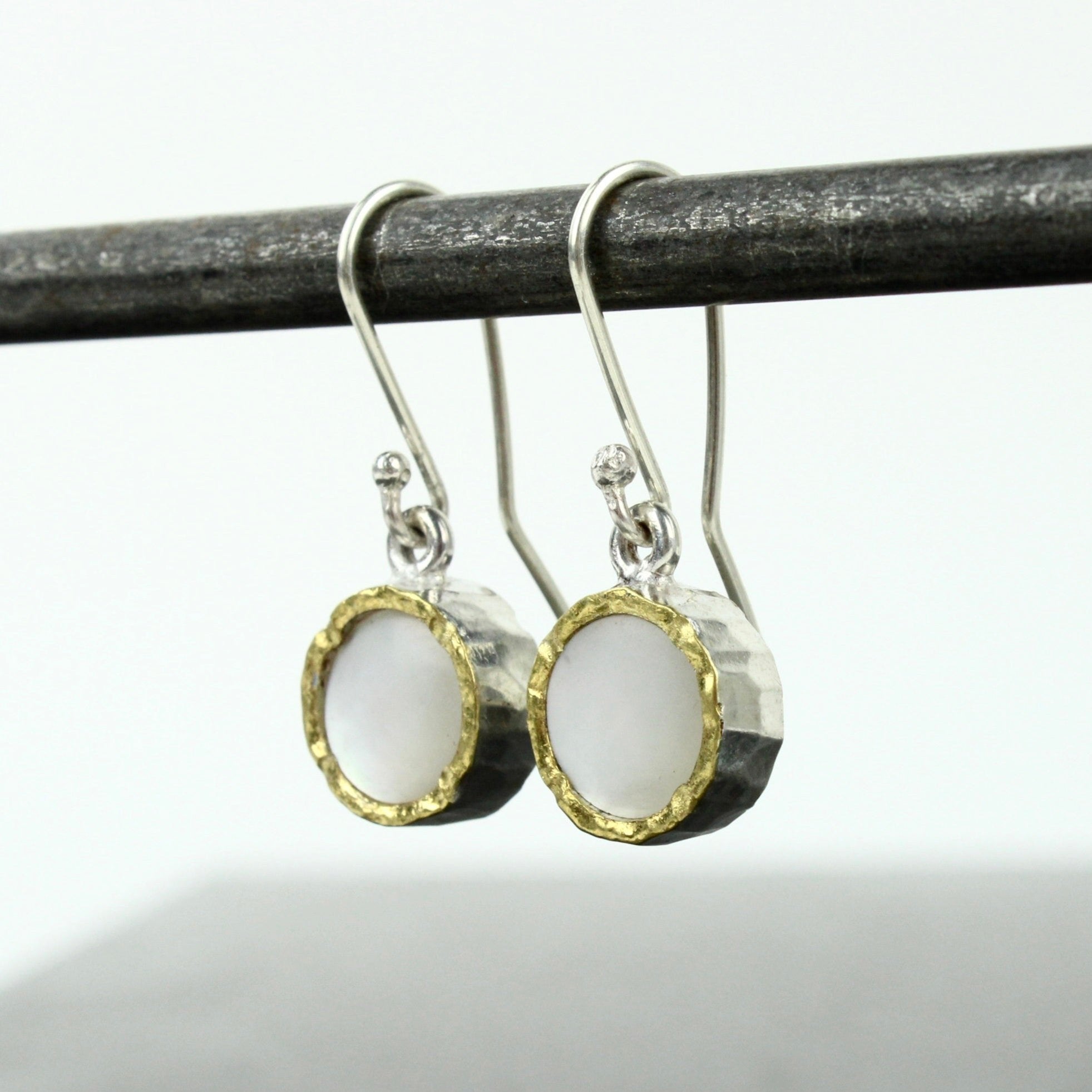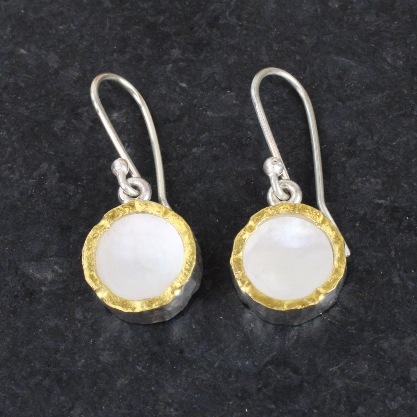 Mother of pearl set in sterling silver with a solid 22ct gold edge