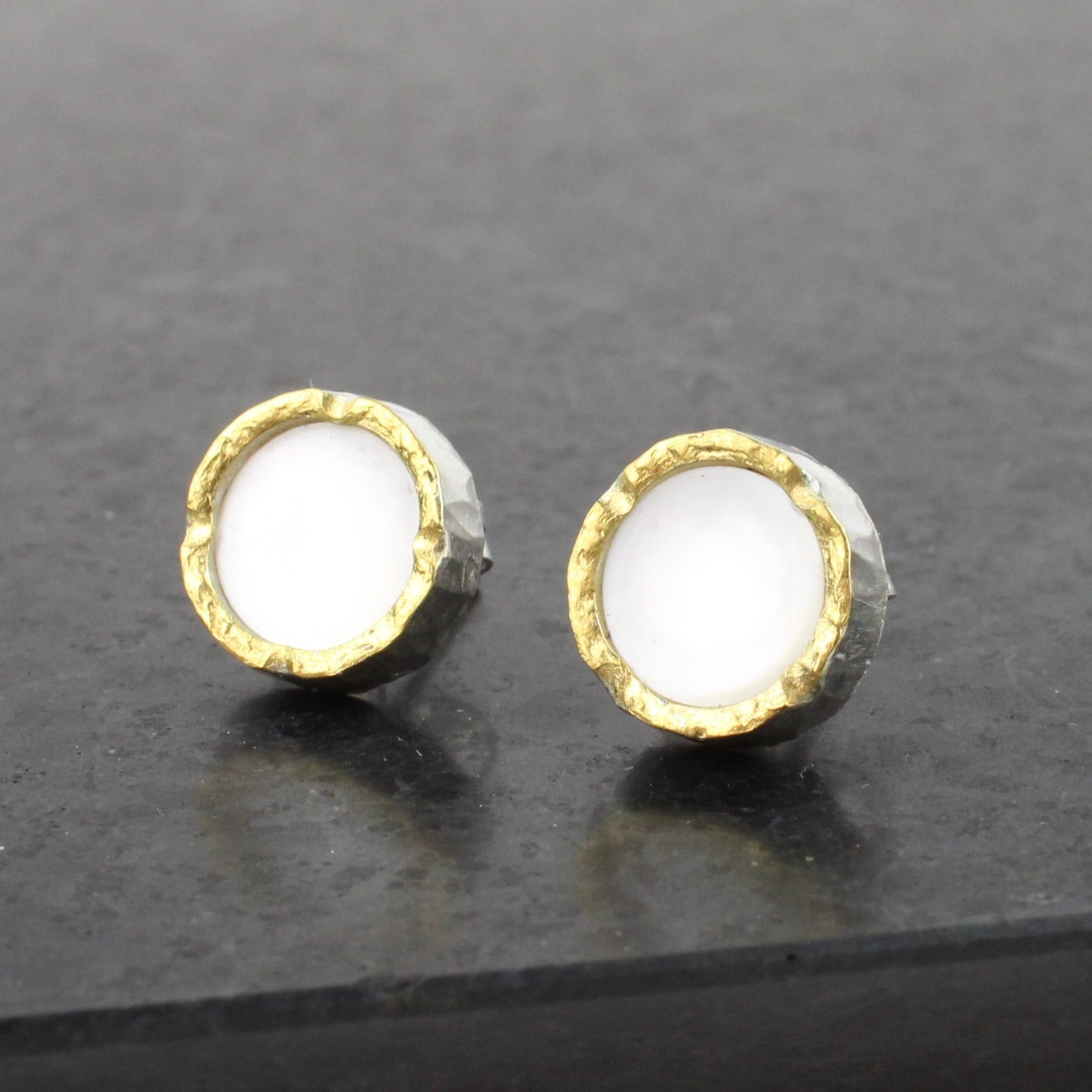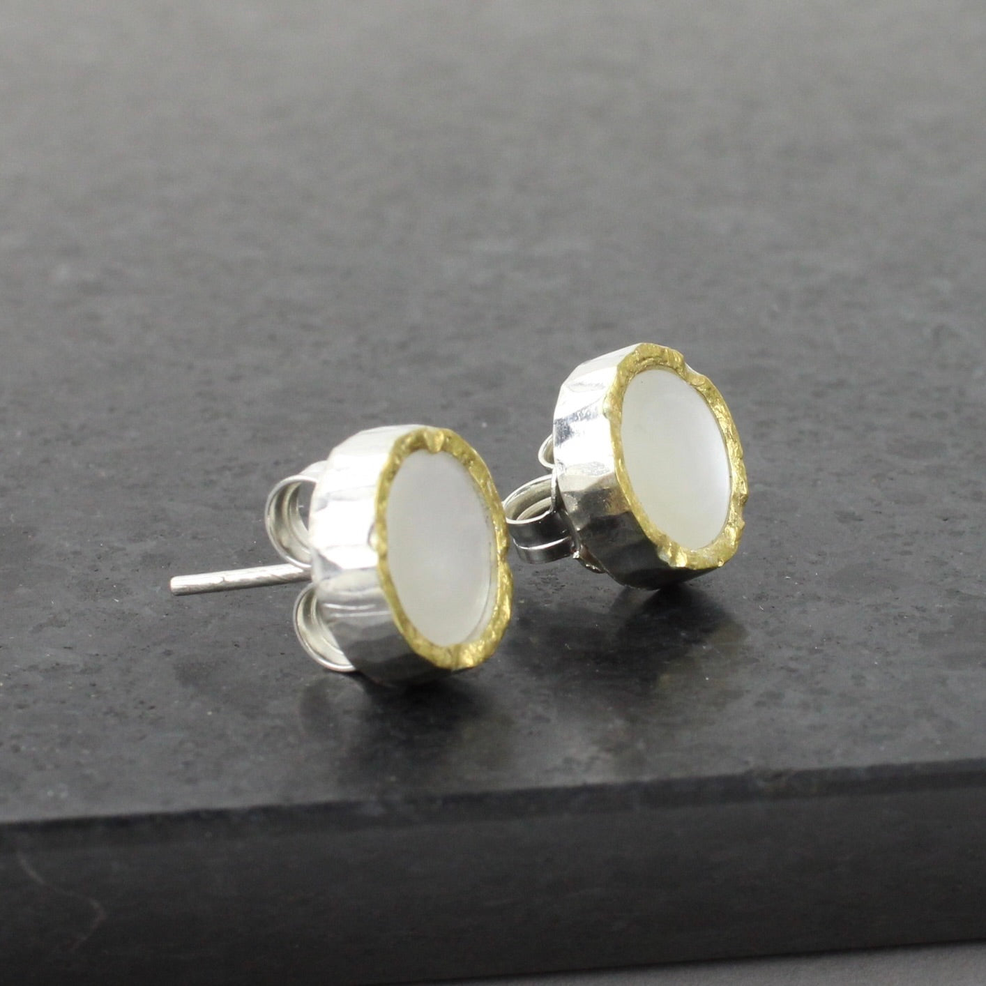 Mother of pearl set in fine silver with solid 22ct gold layered edge on sterling silver stud posts