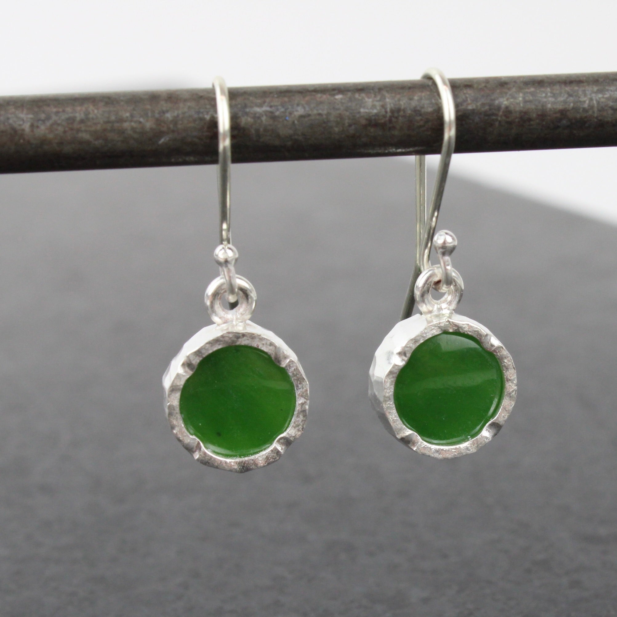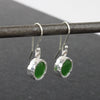 New Zealand greenstone (pounamu) set in fine silver on sterling silver hooks