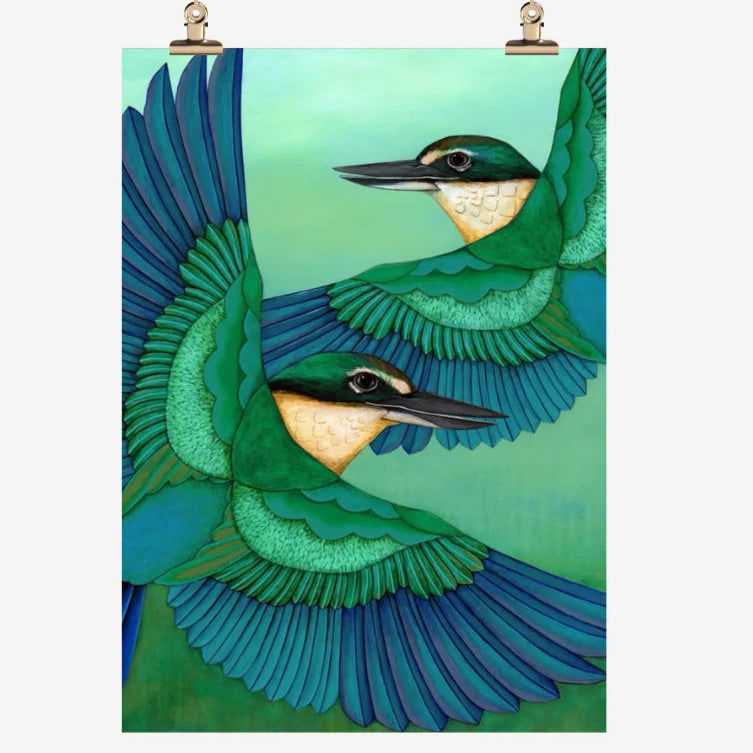 Kathryn Furniss, a self-taught painter from Nelson, New Zealand, draws inspiration from the Pacific landscape and native birds. Her acrylic and ink works feature layered techniques, blending abstract washes with detailed strokes. Through her art, Kathryn tells stories of protection, journeys, and connections between past and present. Kathryn's work is a celebration of New Zealand essence.