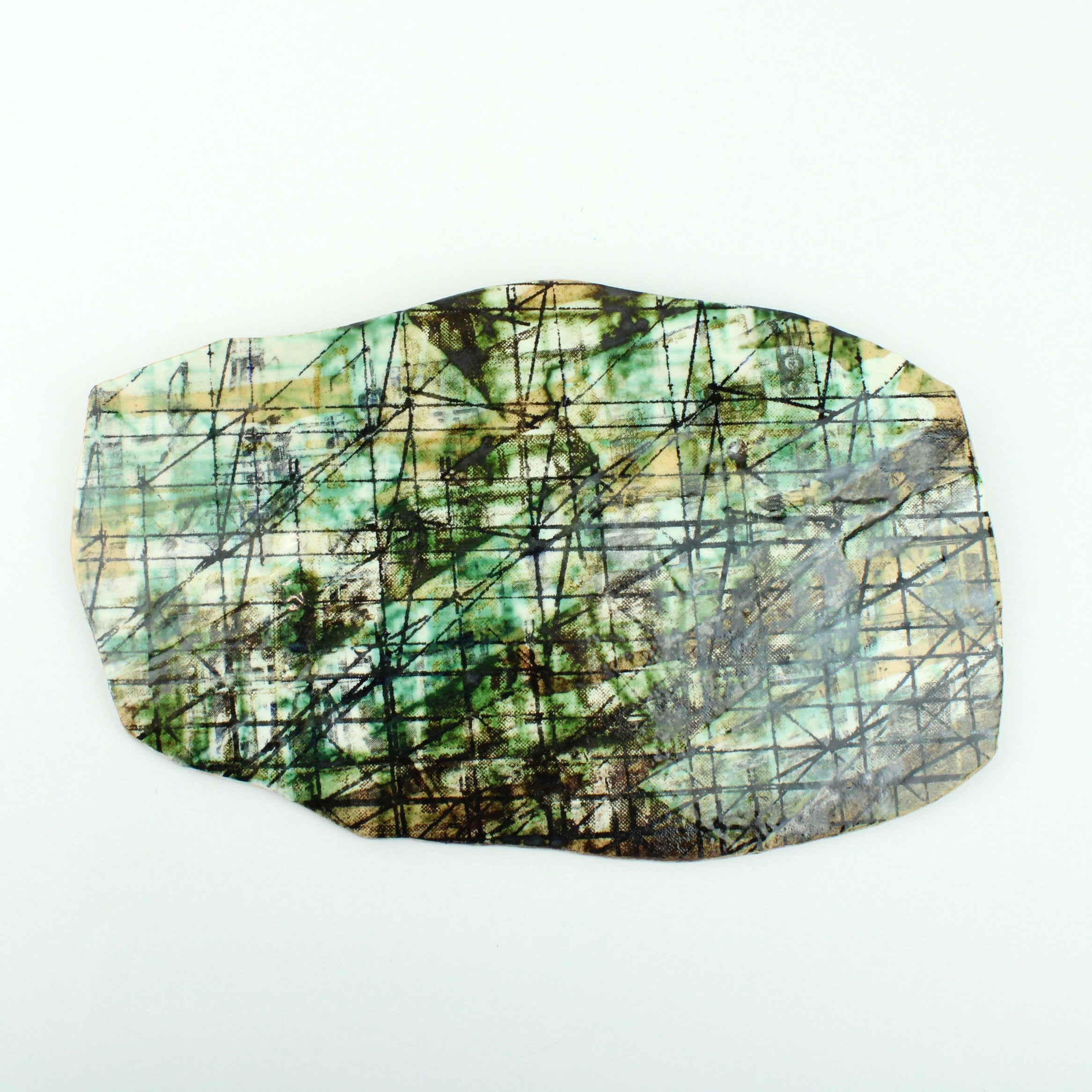 Kate McLean's collection of photographic and drawn ceramic forms create a dynamic tension between the organic nature of clay and the graphic systems layered upon it. Kate’s work invites viewers to consider how memory, place, and visual language imprint themselves onto the material world. In these clustered pieces, the traces of human gesture, printed image, and earthy form coexist, offering a quiet but compelling meditation on how we read, carry, and reinterpret the marks of everyday life.