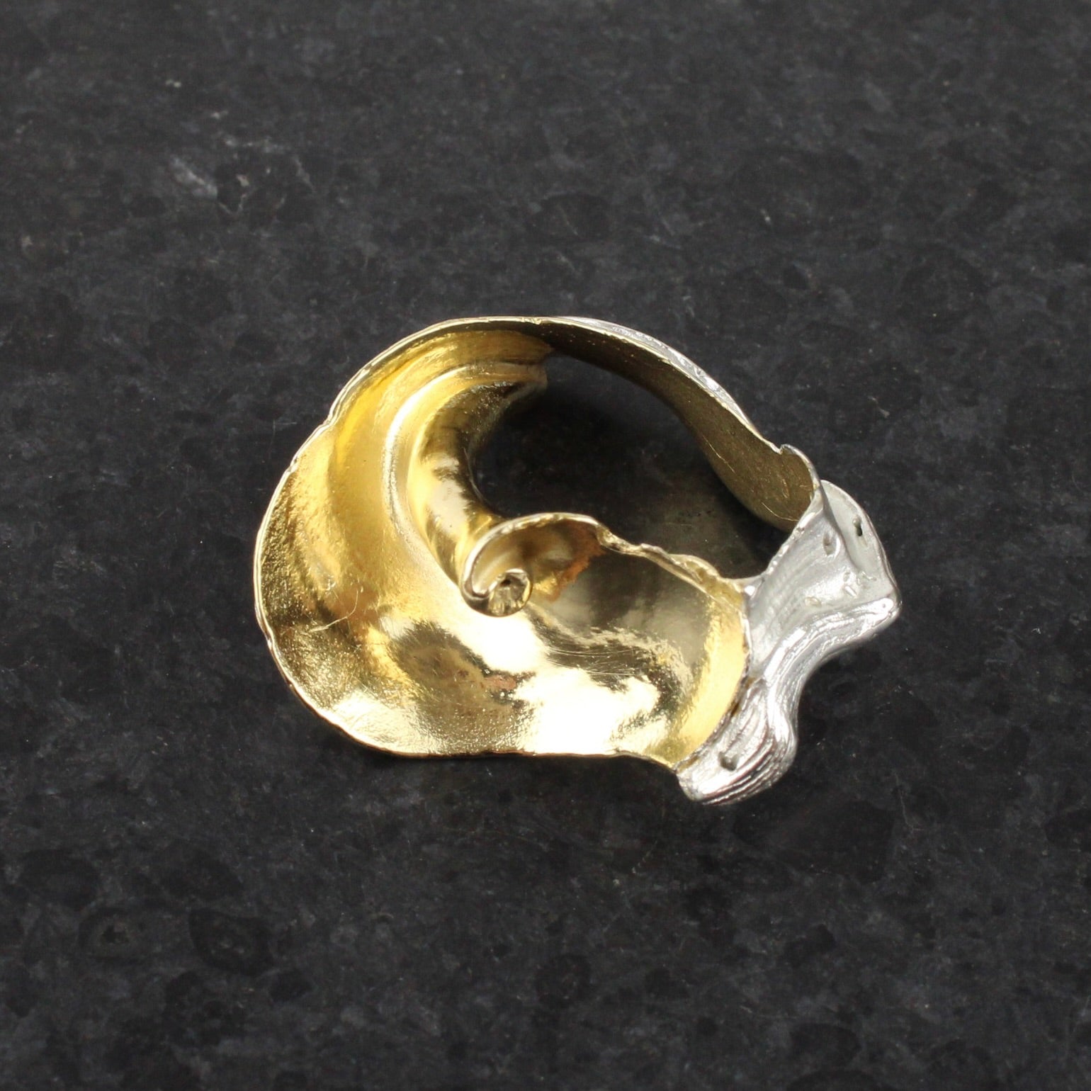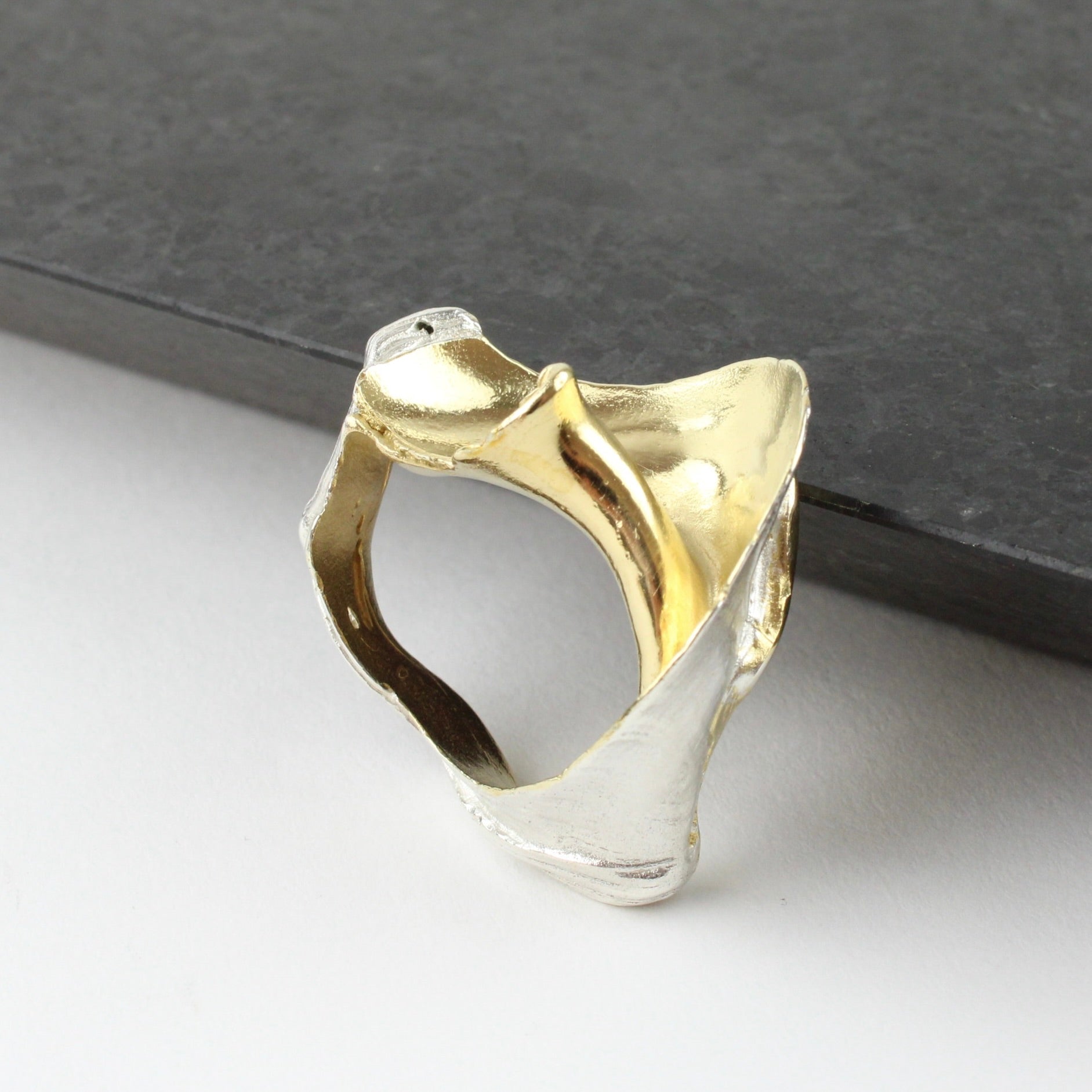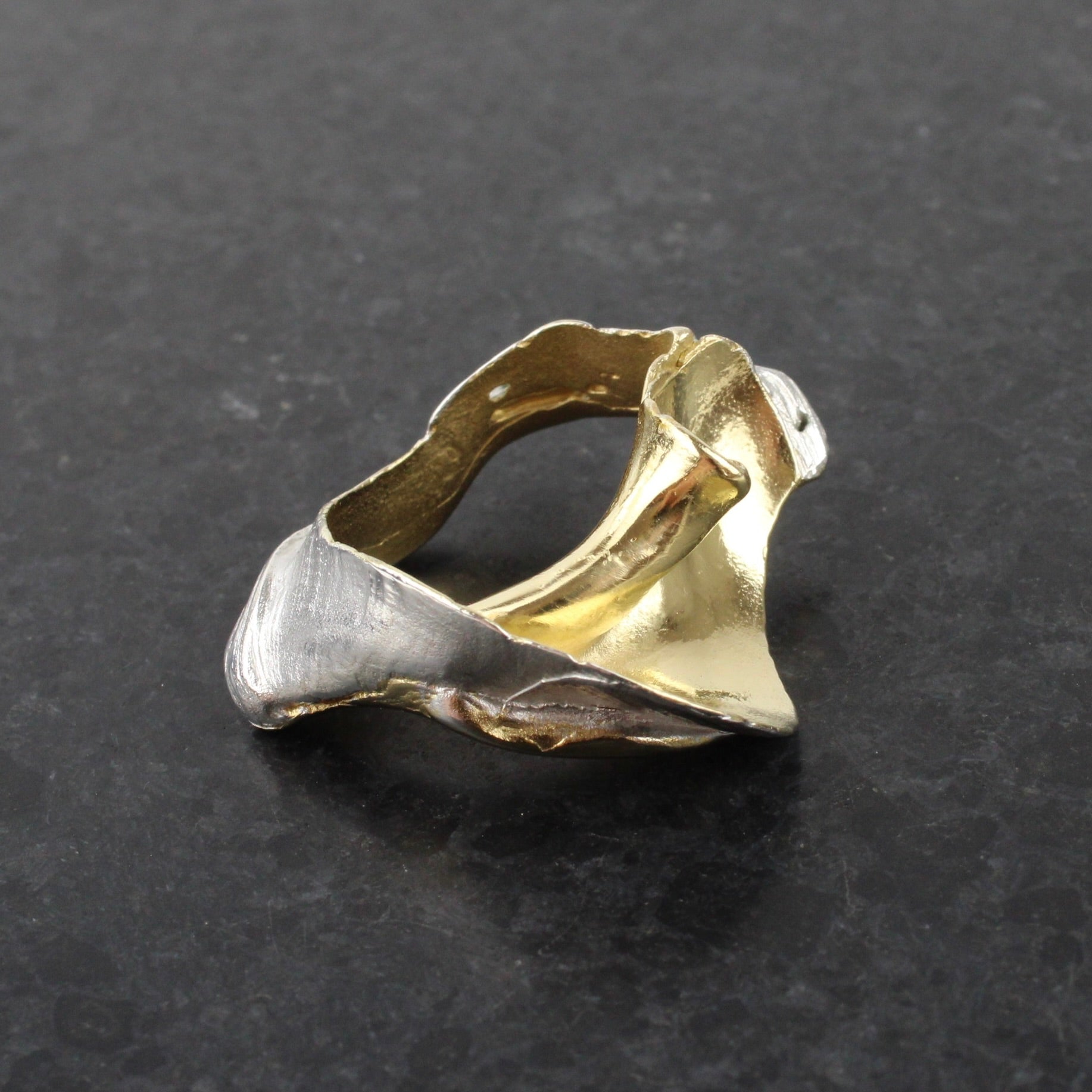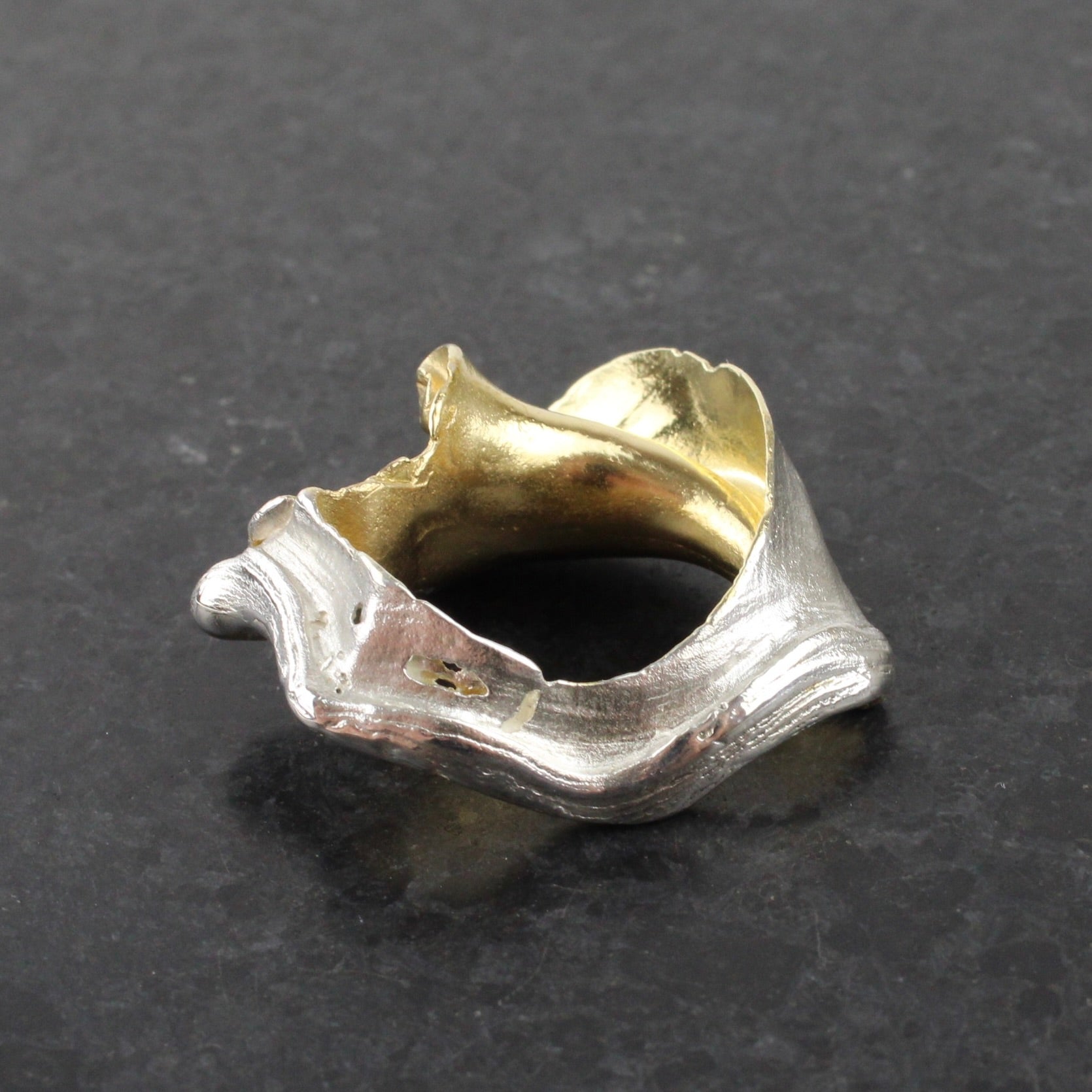 Swirling cast sterling silver ring with 14ct gold highlights