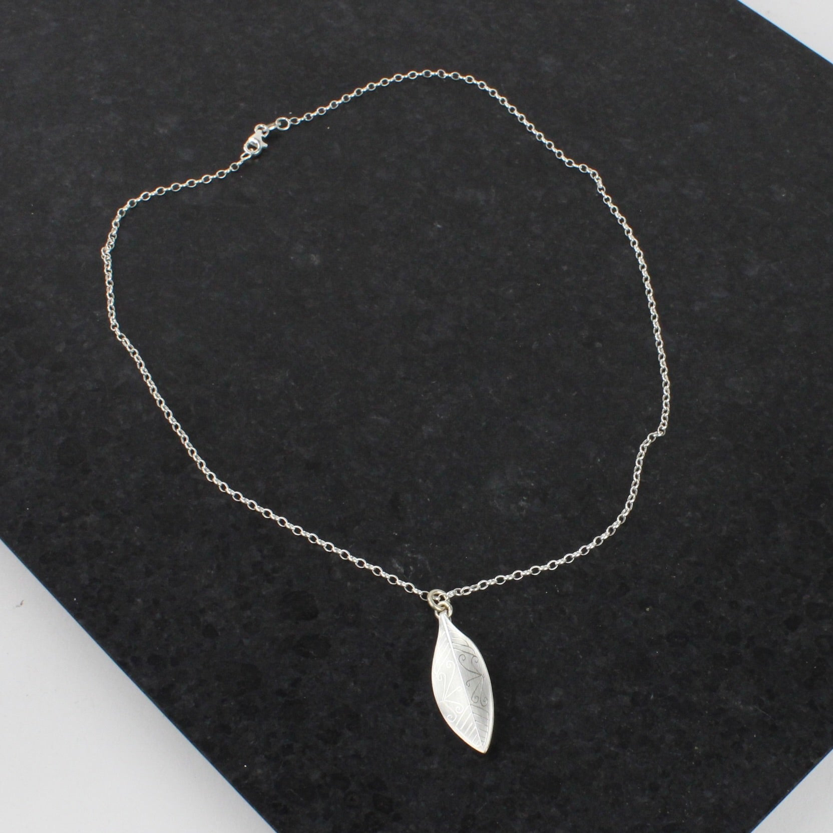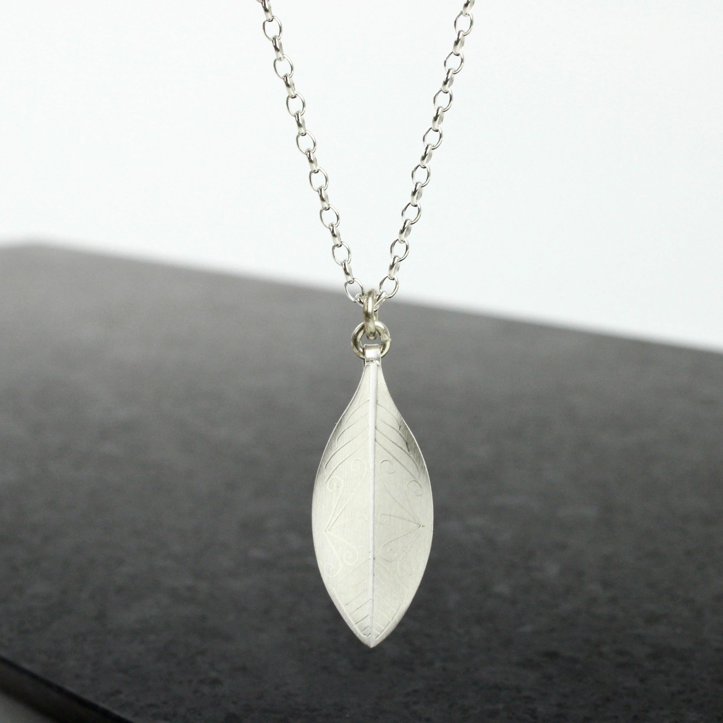 33mm silver leaf on a 450mm sterling silver chain