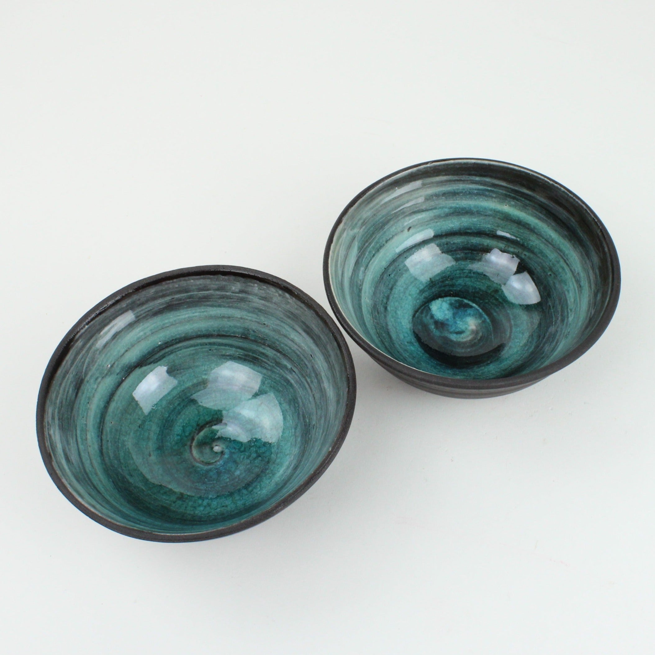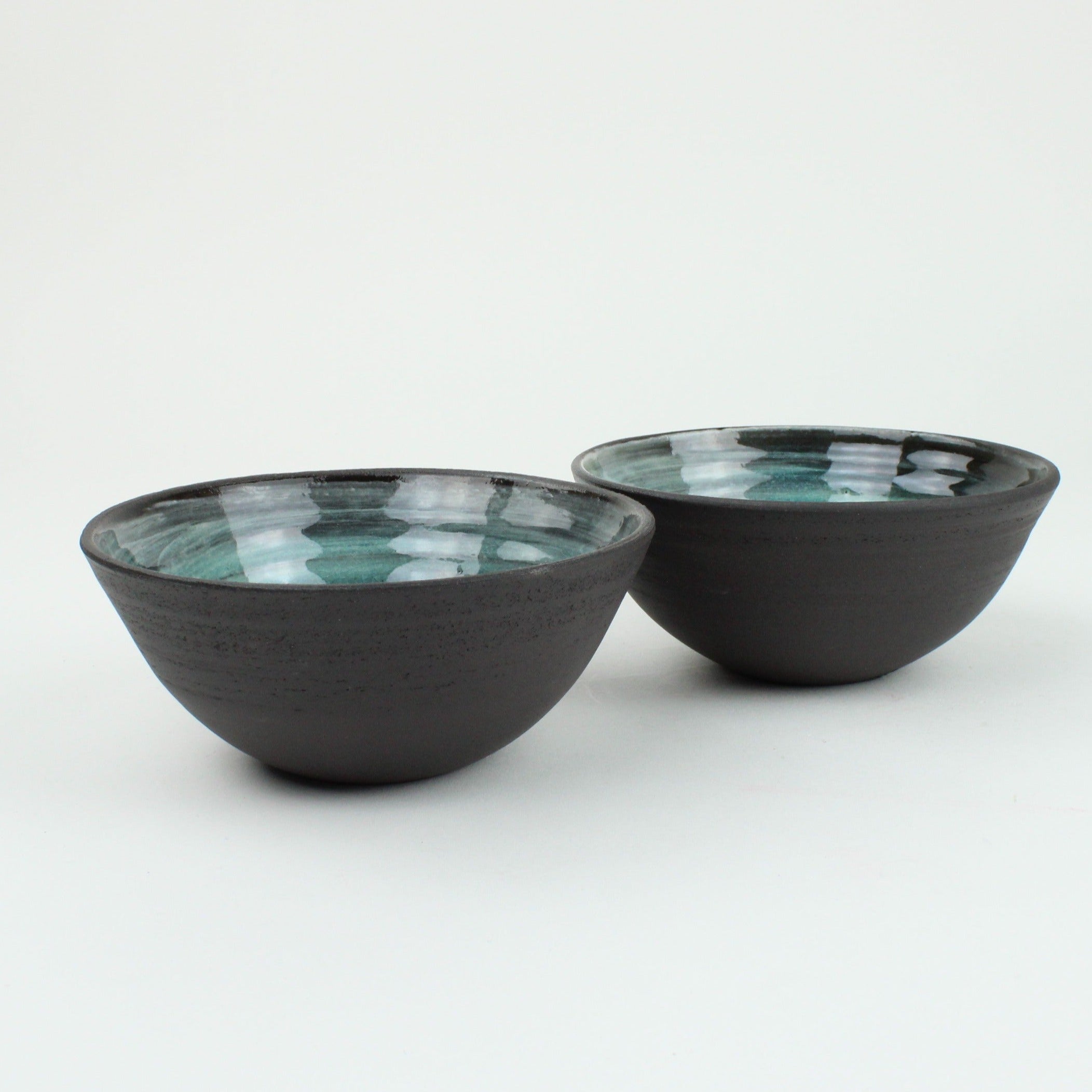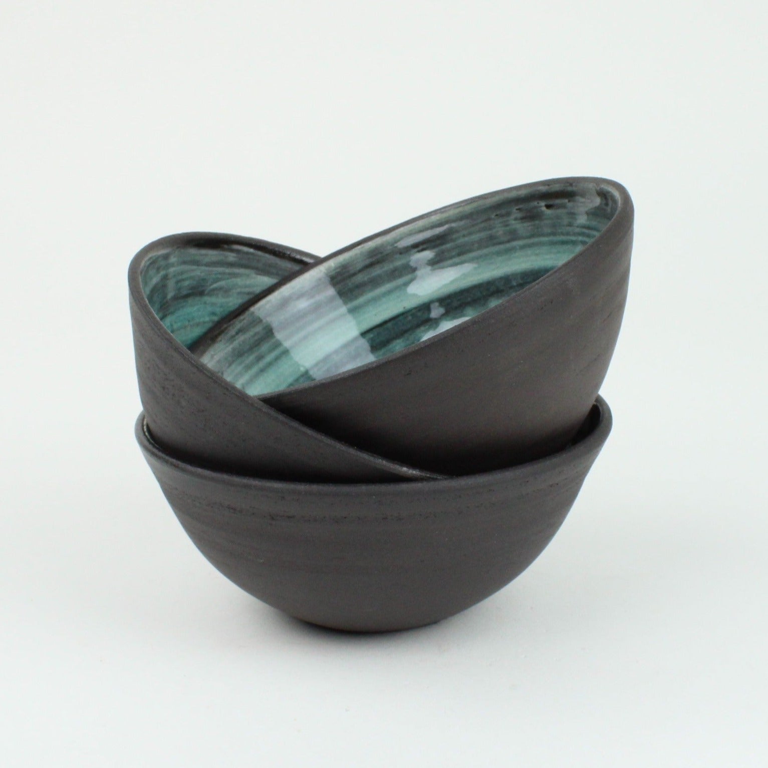 Throwing pots with black stoneware has been a way for Aímee to enjoy the contrast of the black slightly gritty clay with the smooth coloured glaze surface.