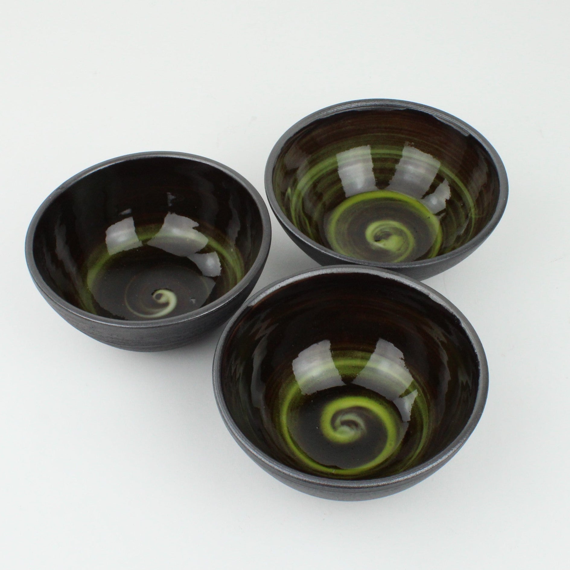 Throwing pots with black stoneware has been a way for Aímee to enjoy the contrast of the black slightly gritty clay with the smooth coloured glaze surface.