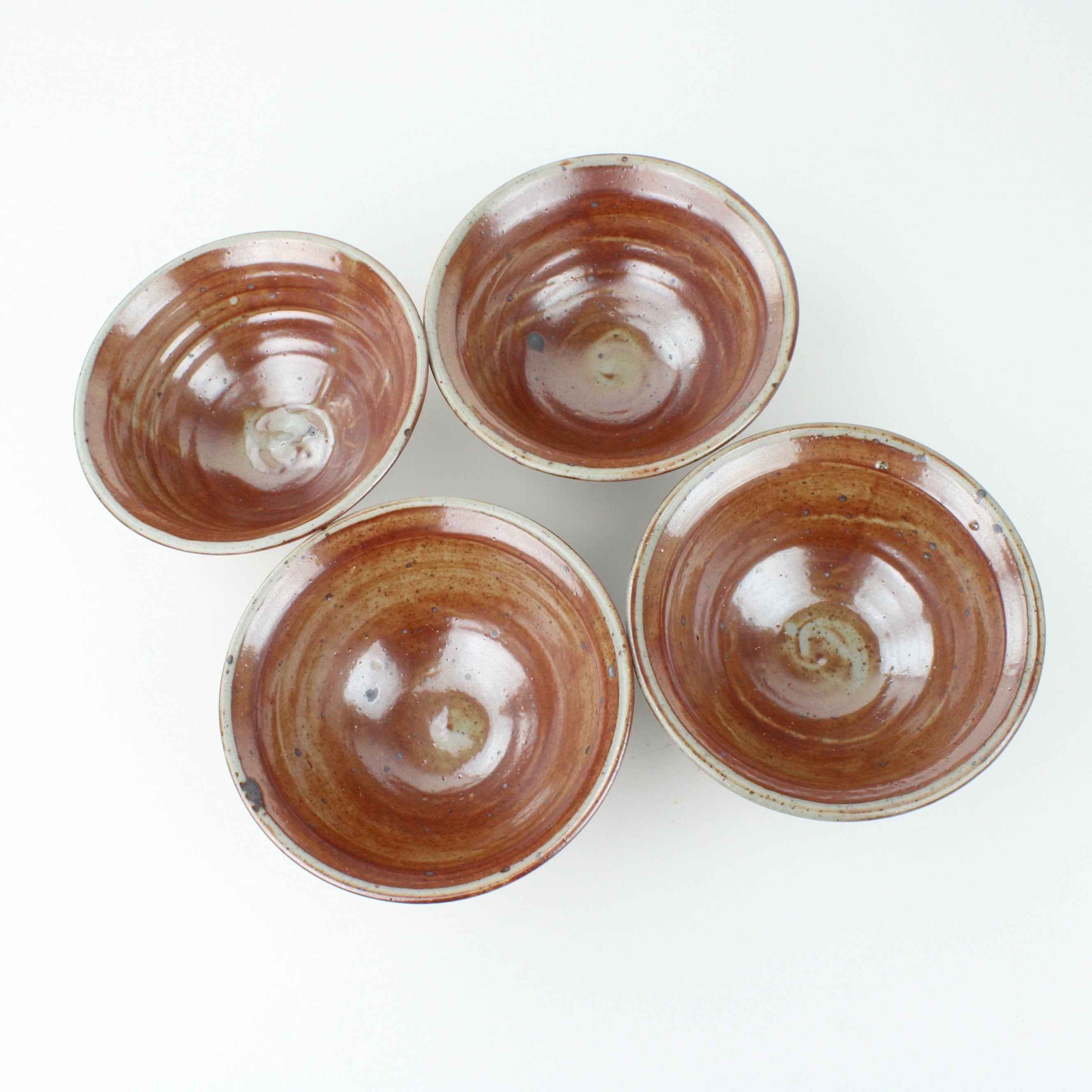Handcrafted small lipped bowl, shino glazed with an earthy red finish from Barry Brickell's own shino recipe