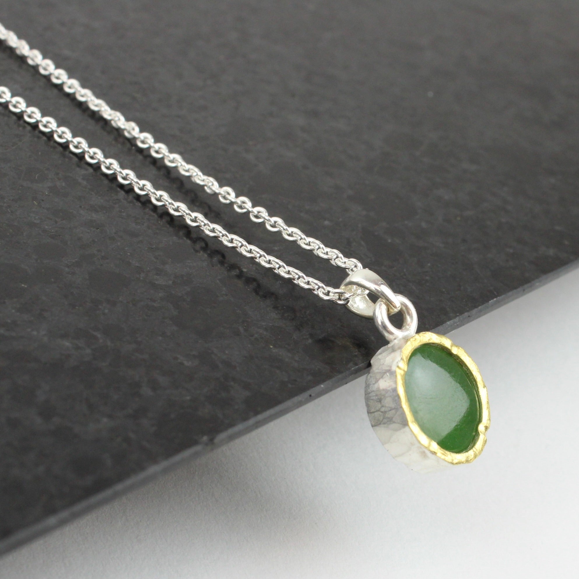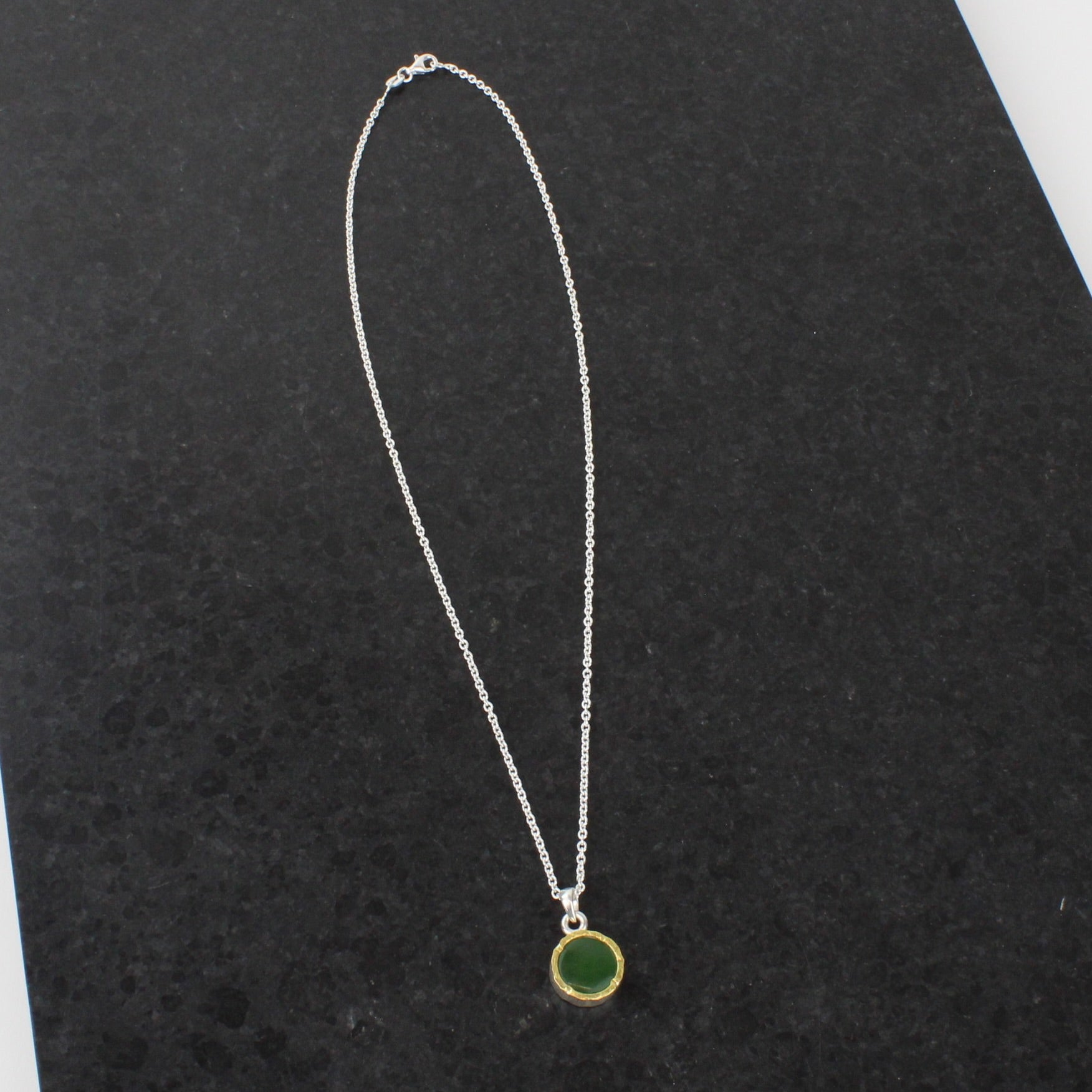 New Zealand Greenstone (pounamu) with solid 22ct gold layer over sterling silver