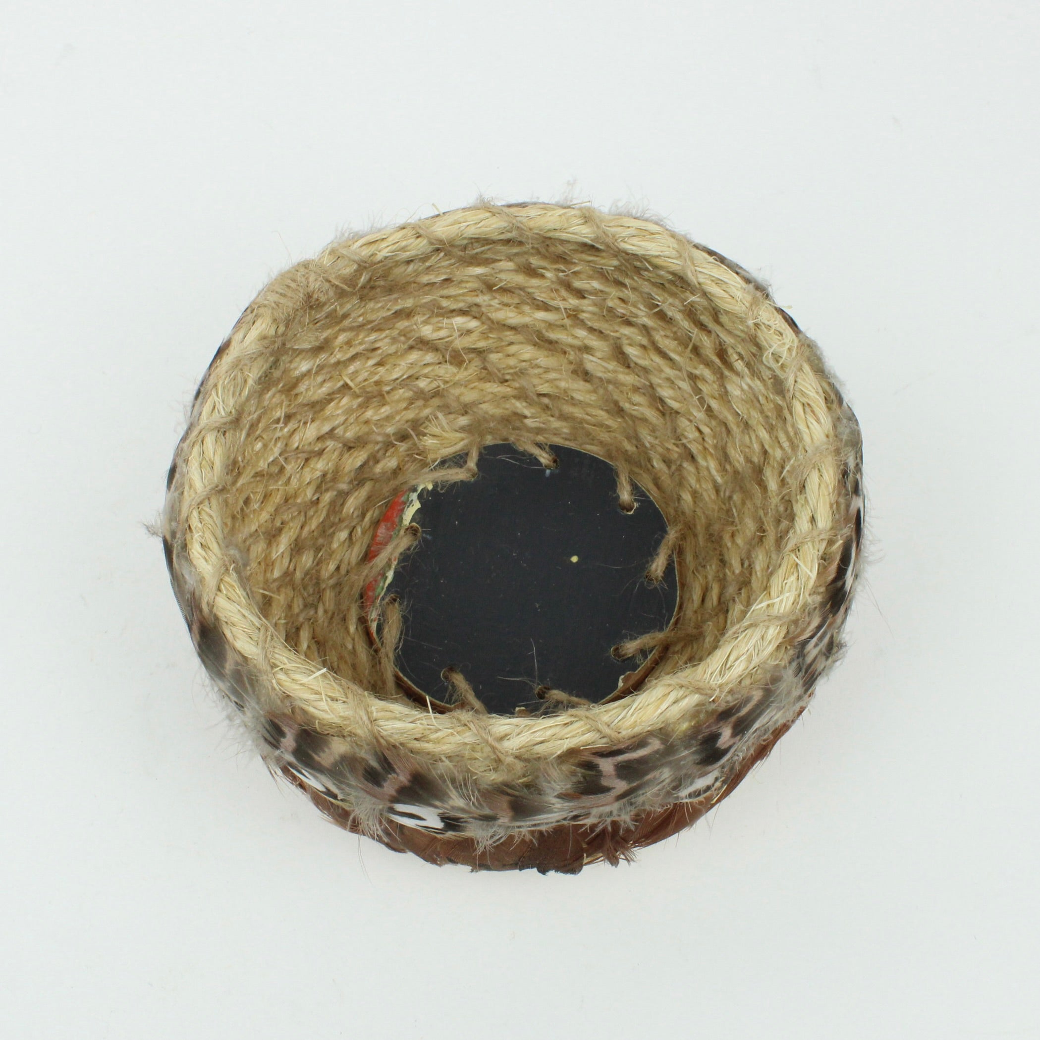Jute rope, spoonbill duck and pheasant feathers with a recycled timber base