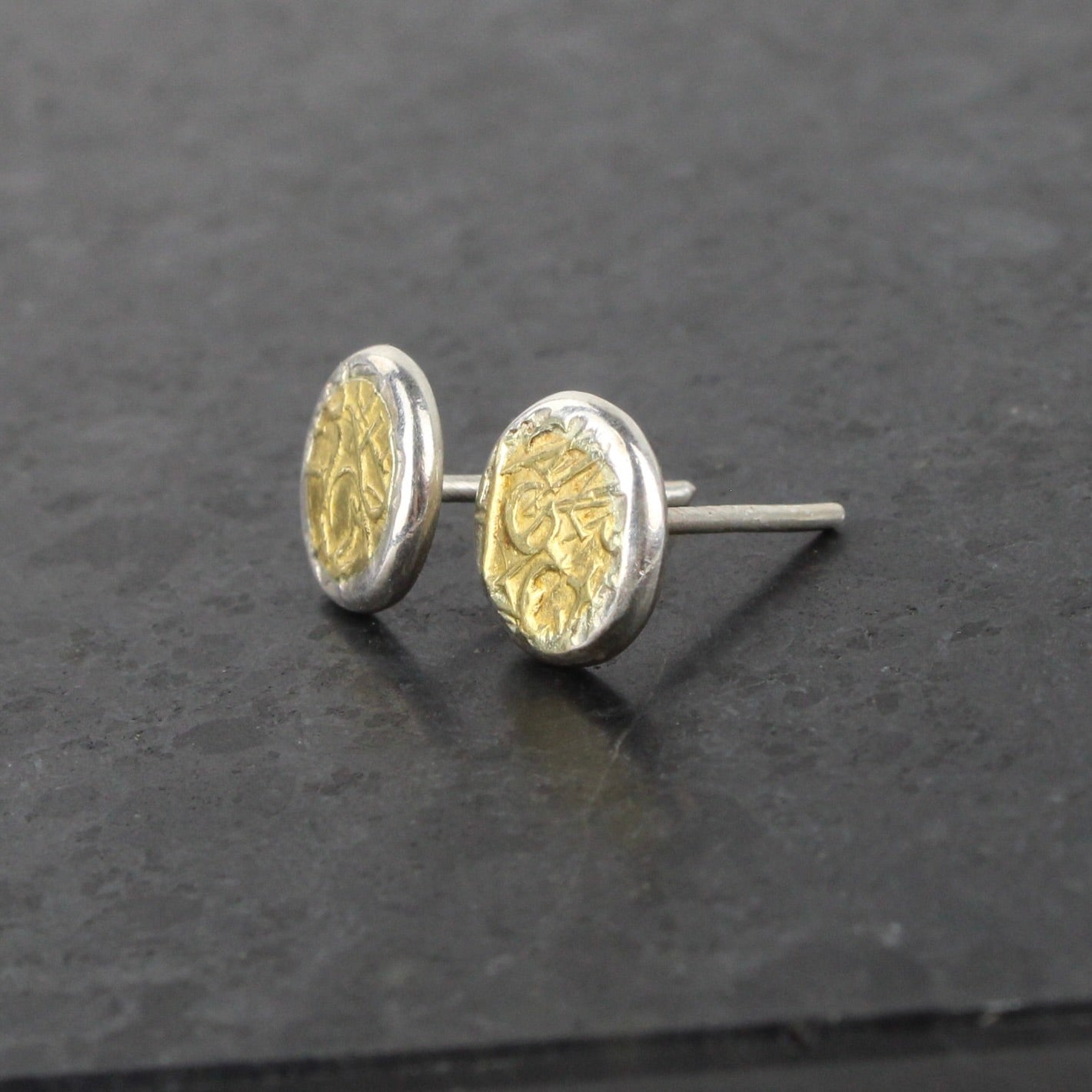 David McLeod's Text-ure range features raised letters to create texture, hence the name. Solid 22ct gold is layered over sterling silver.