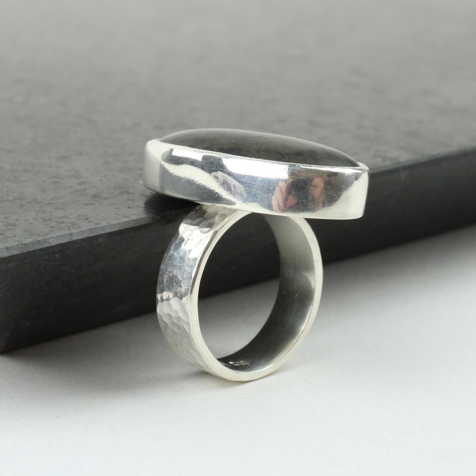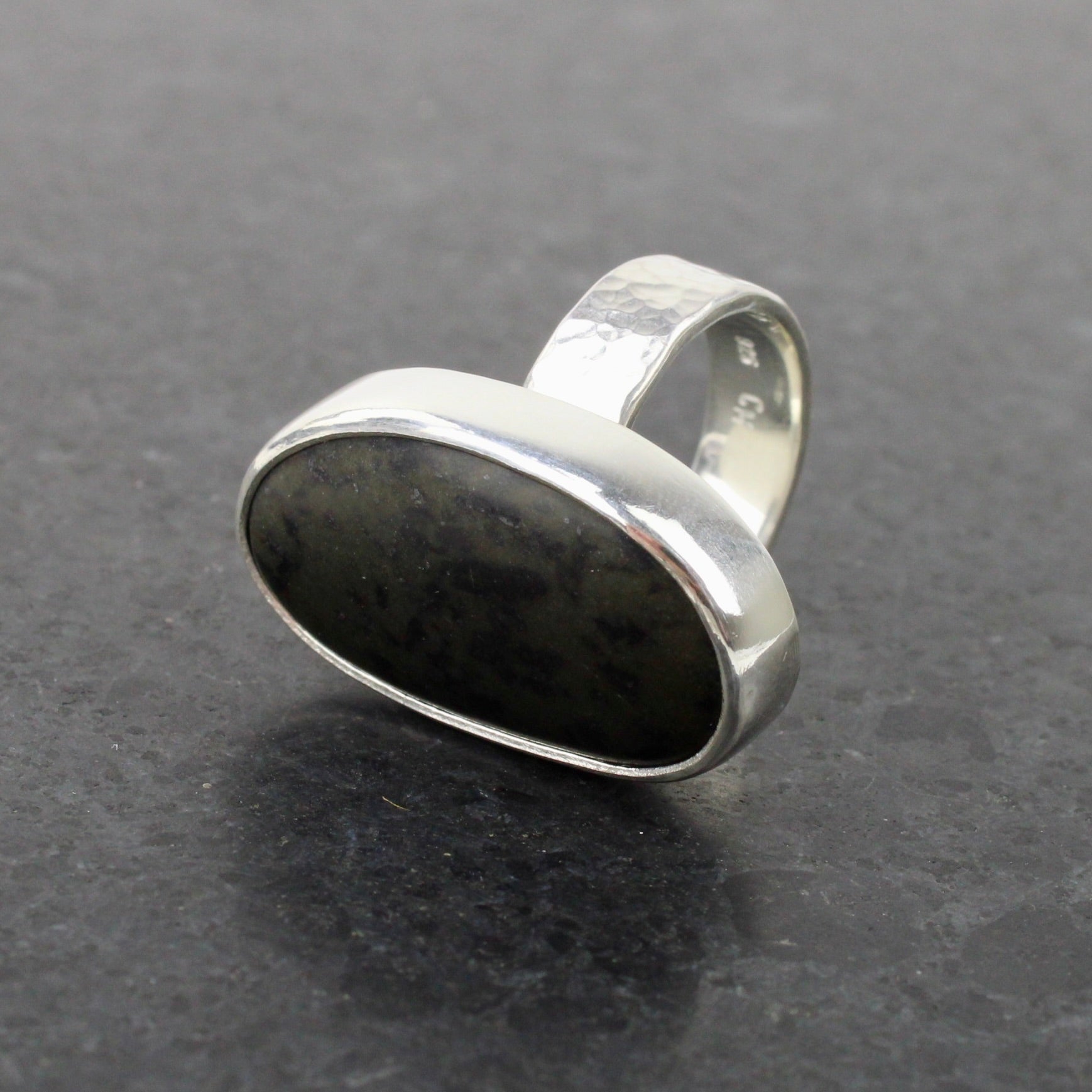Jackson River semi-nephrite South Westland beach pebble set in fine silver on a sterling silver textured band