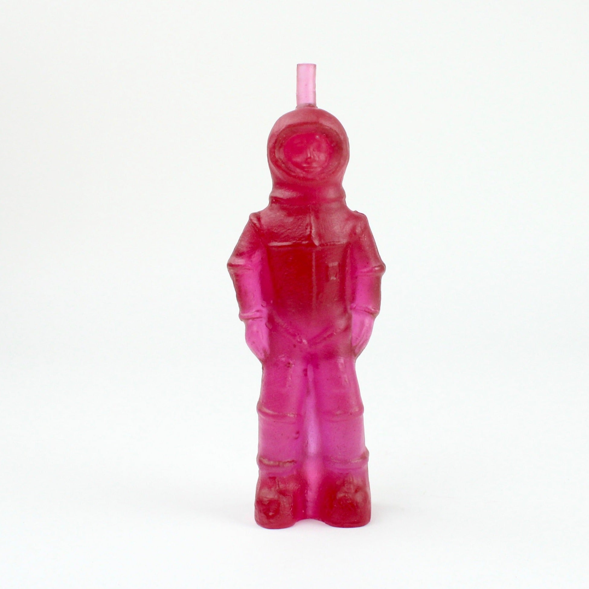 Spaceman Drink Bottle cast in solid glass 200mm H x 70mm W x 50mm D