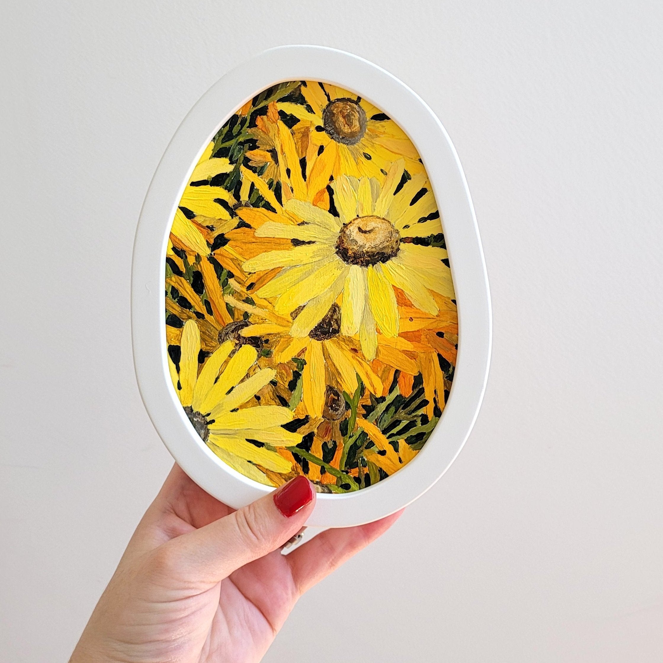 ‘The wobbly frame is based on a hand-drawn circle - no two are exactly alike’ Frames are 30mm in depth and come ready to hang.