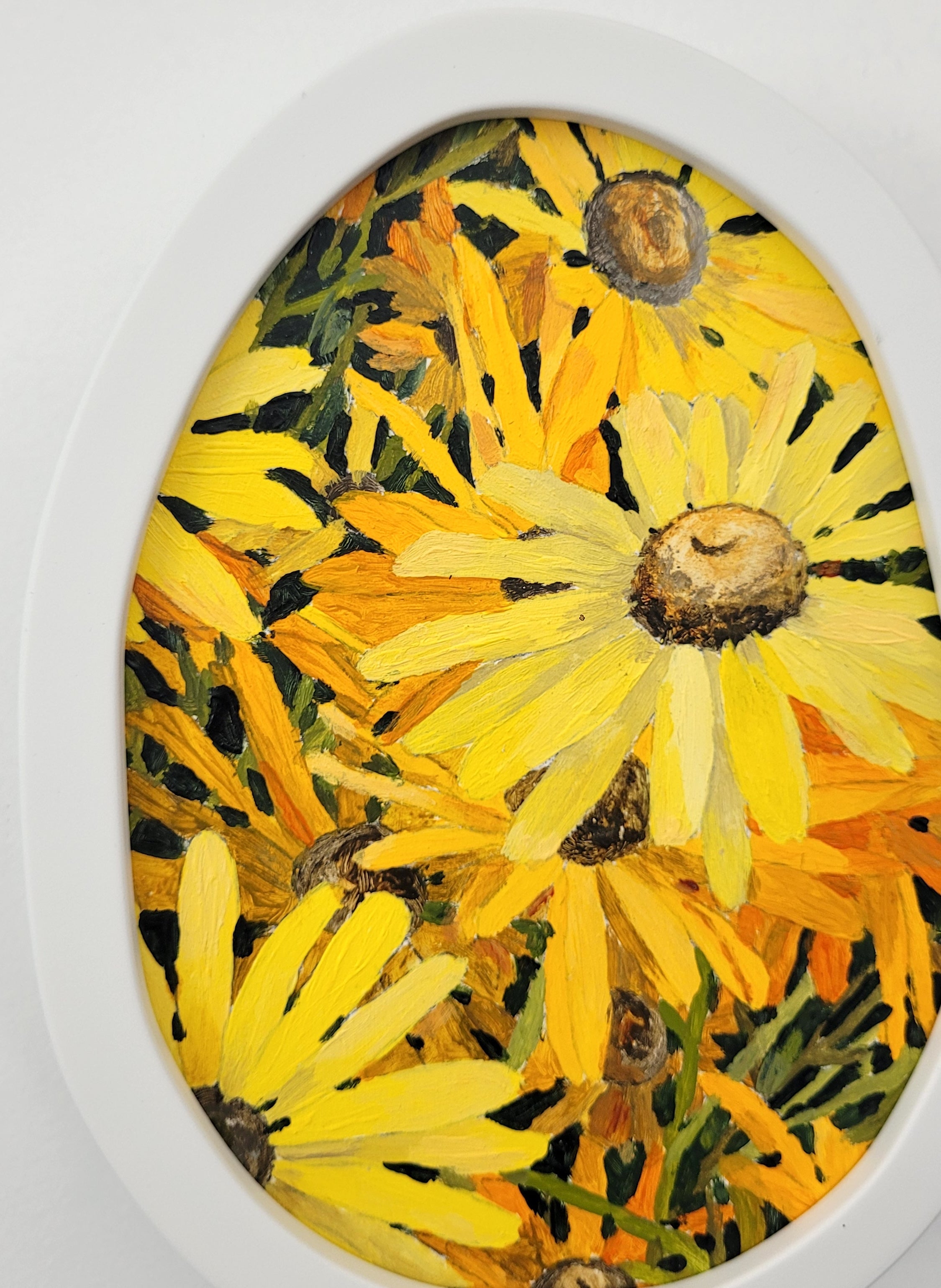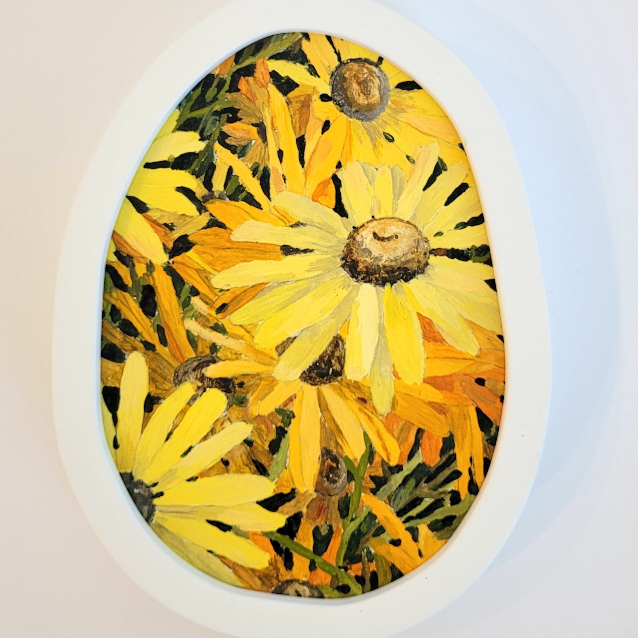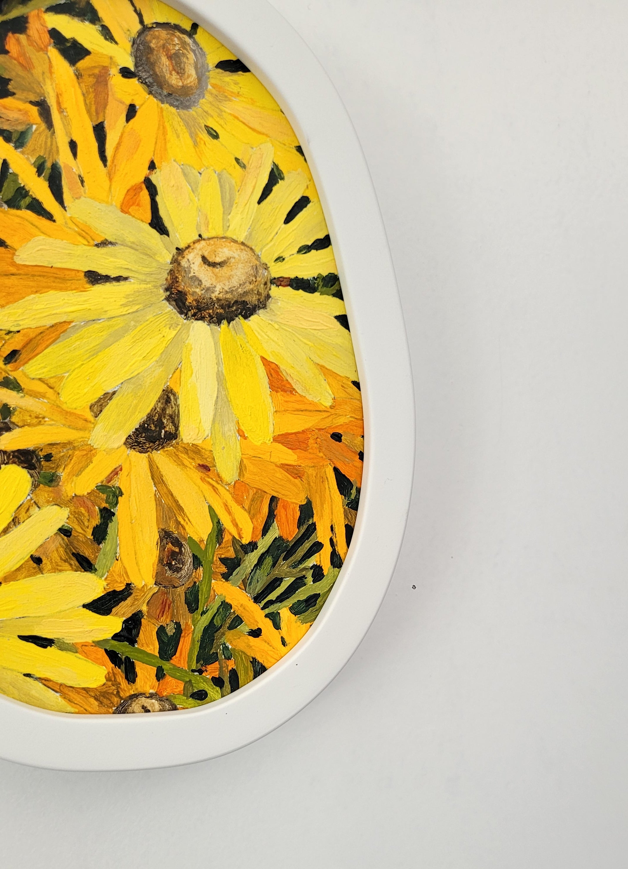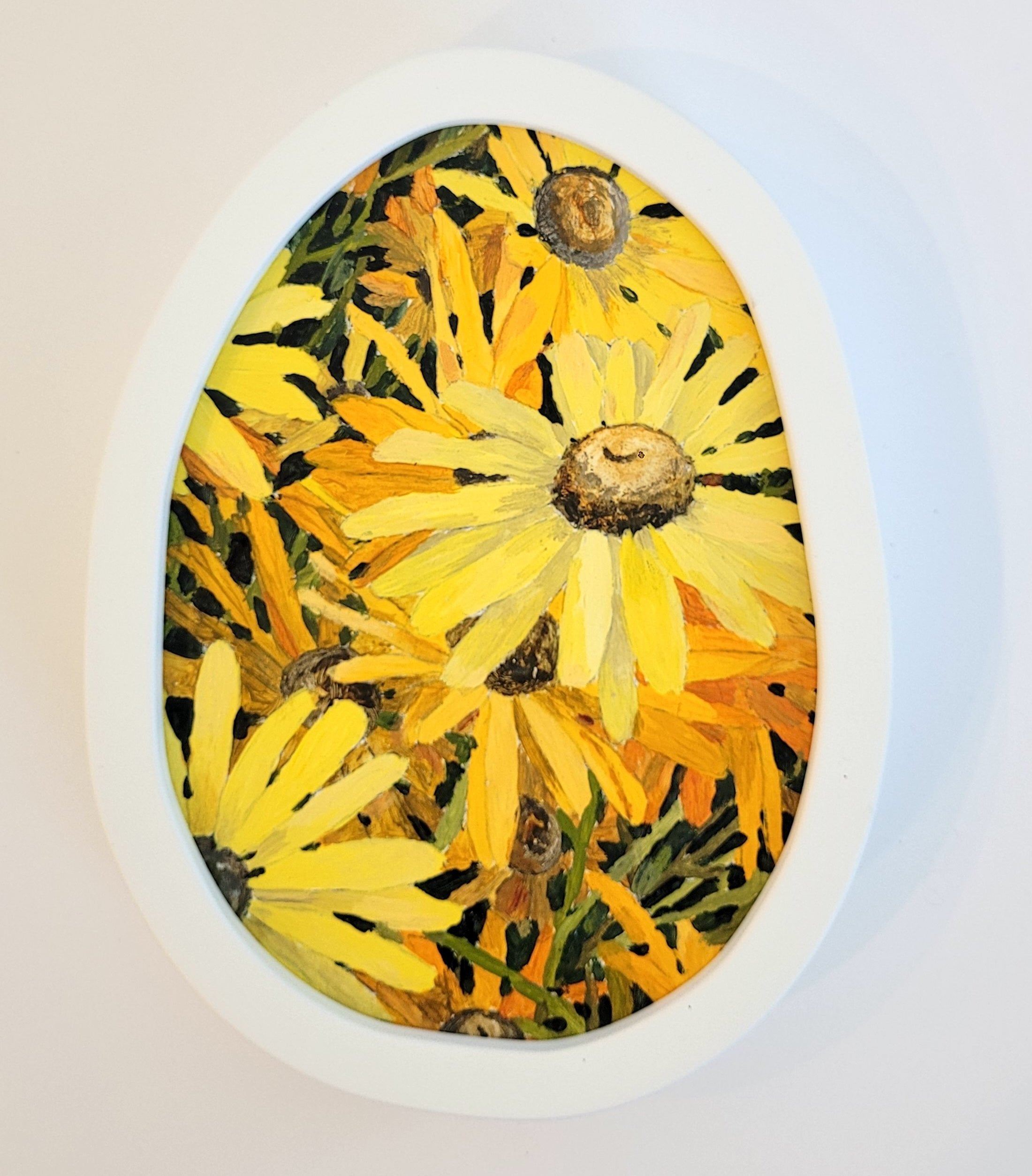 Framed in a custom made ‘wobbly’ frame in white with matt finish.
