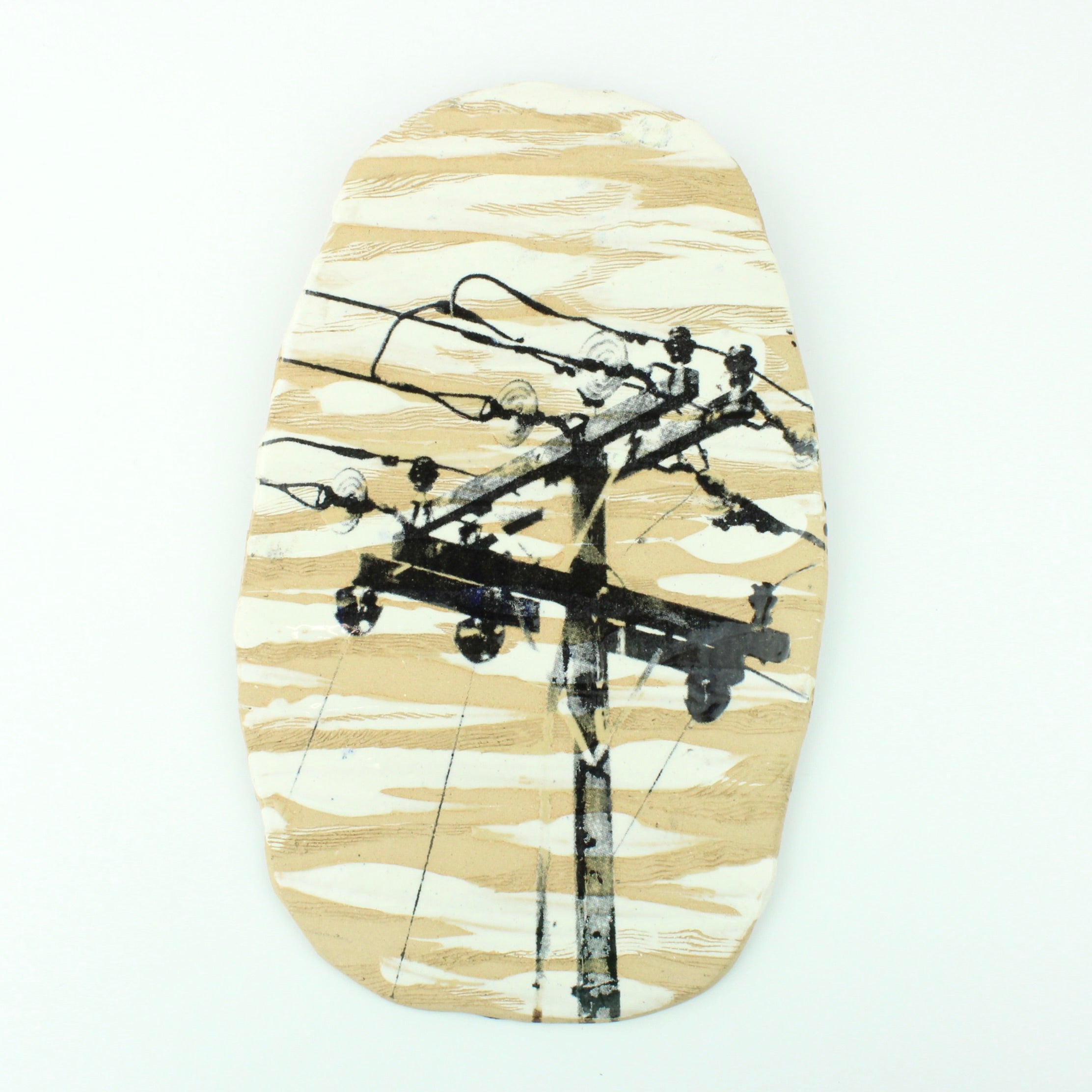 Kate McLean's collection of photographic and drawn ceramic forms create a dynamic tension between the organic nature of clay and the graphic systems layered upon it. Kate’s work invites viewers to consider how memory, place, and visual language imprint themselves onto the material world. In these clustered pieces, the traces of human gesture, printed image, and earthy form coexist, offering a quiet but compelling meditation on how we read, carry, and reinterpret the marks of everyday life.
