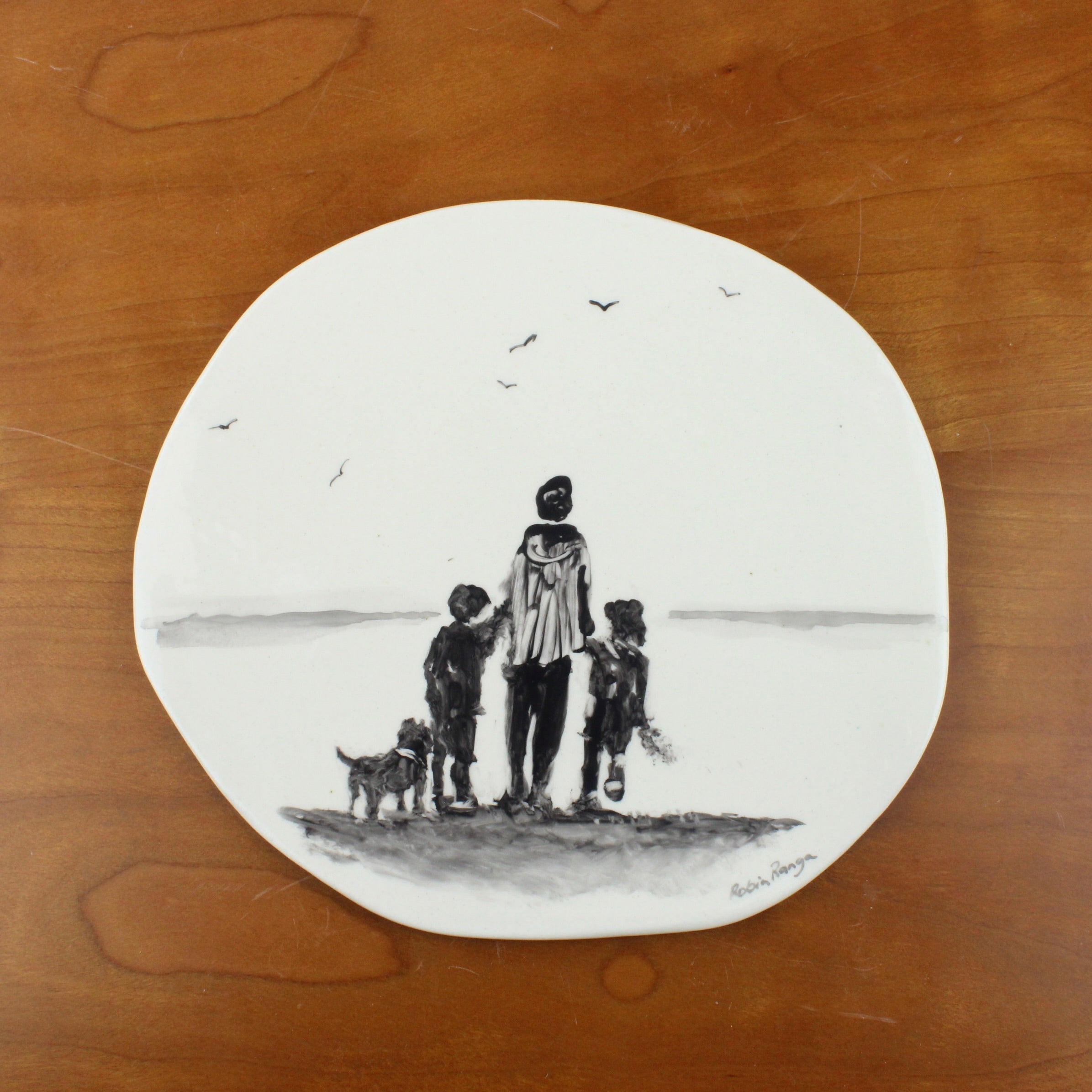 Hand painted ceramic wall plaques are silhouette "snaps of time" that each tell their unique story.