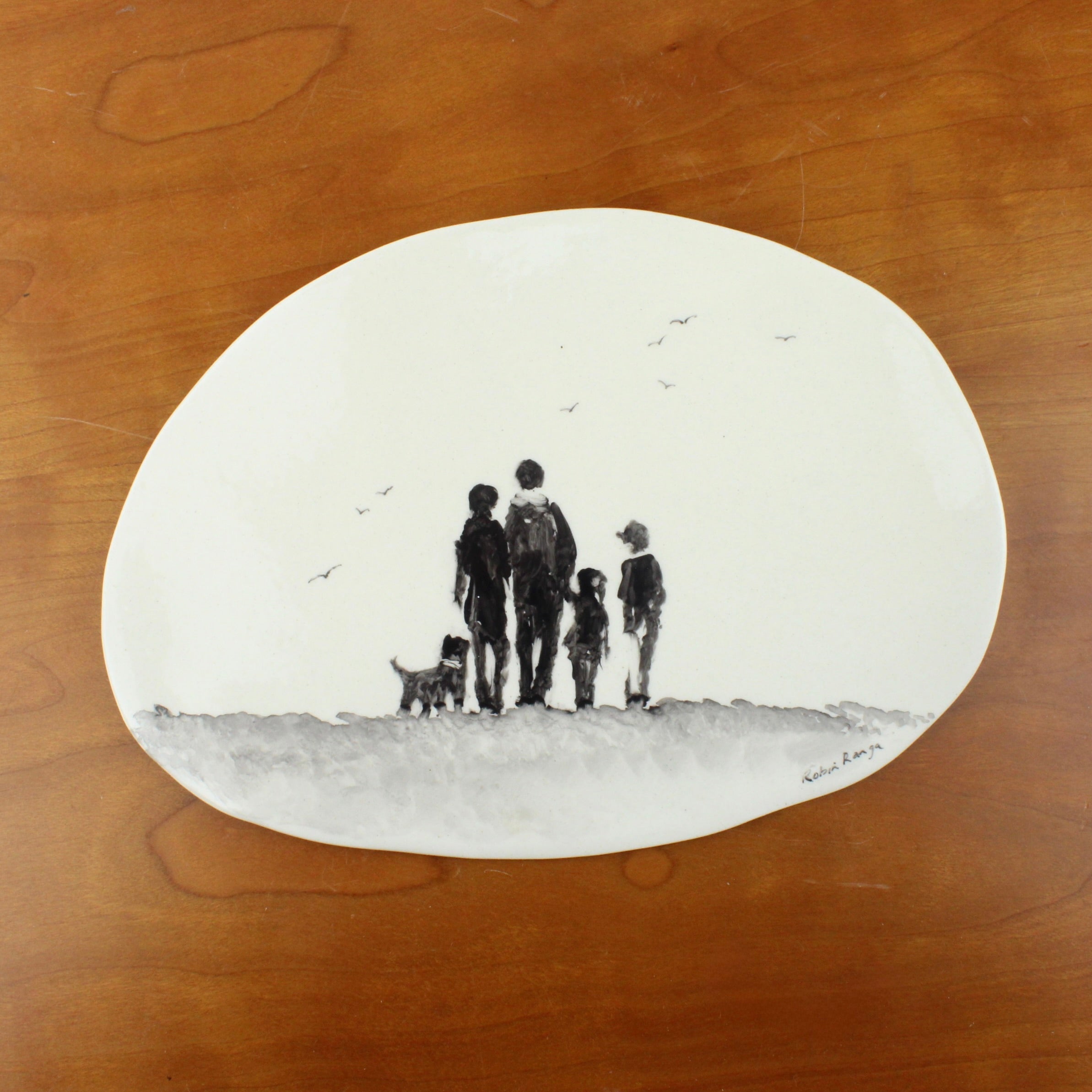 Hand painted ceramic wall plaques are silhouette "snaps of time" that each tell their unique story.