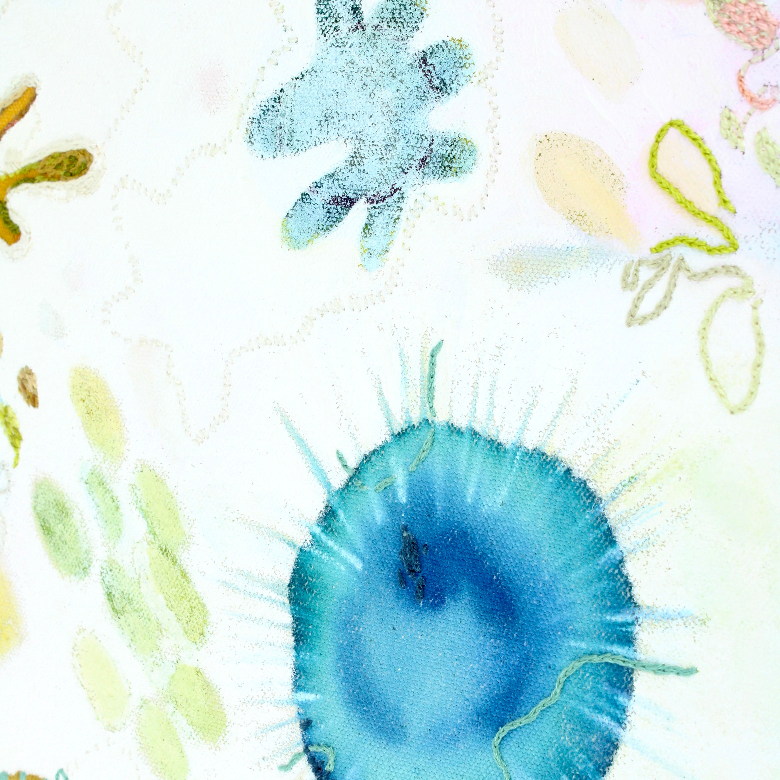 Hannah White is a textile artist whose work is deeply inspired by the ever-changing rhythms of the natural world. With a lifelong connection to the coast, she is drawn to the sea’s unpredictable tides, shifting rhythms and fragile ecosystem, which is reflected in the intricate and fluid nature of her contemporary embroidery.