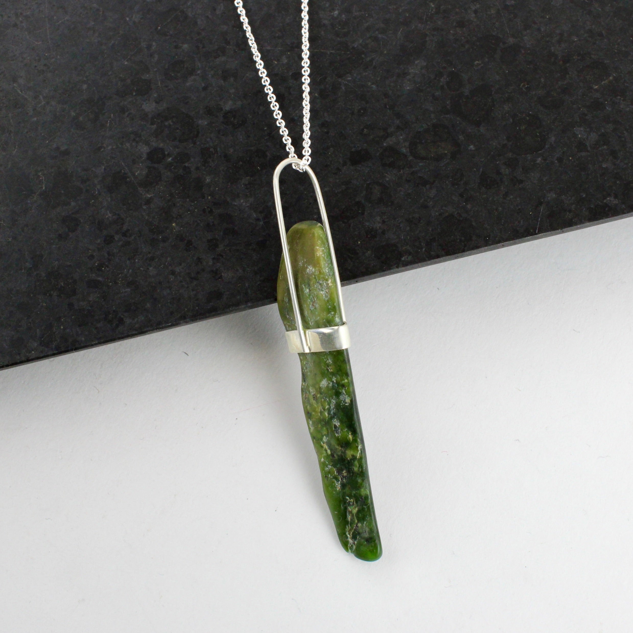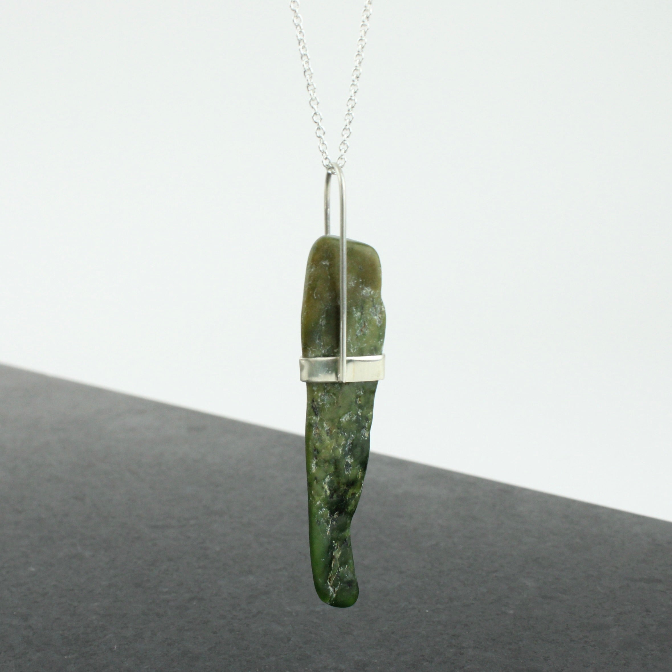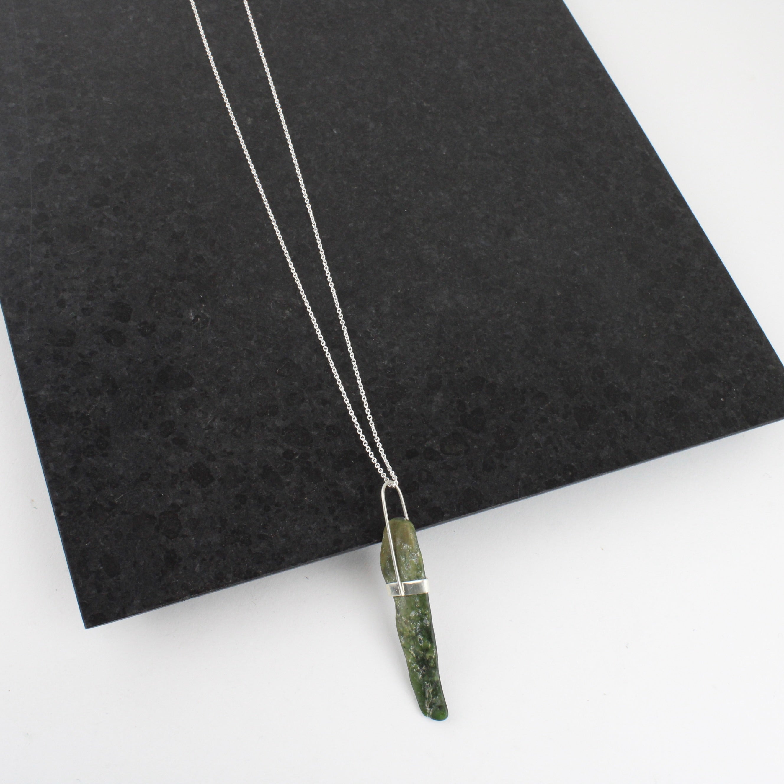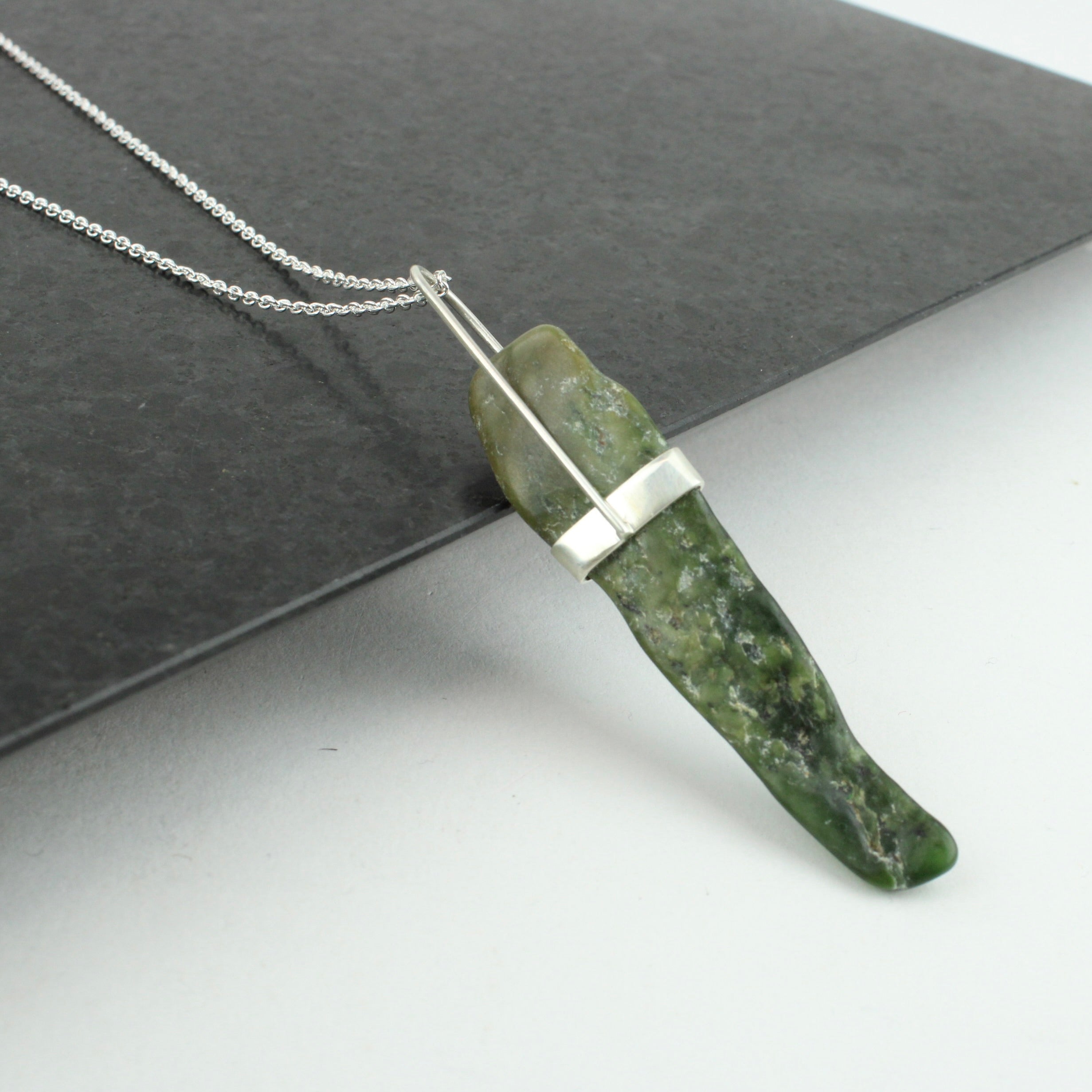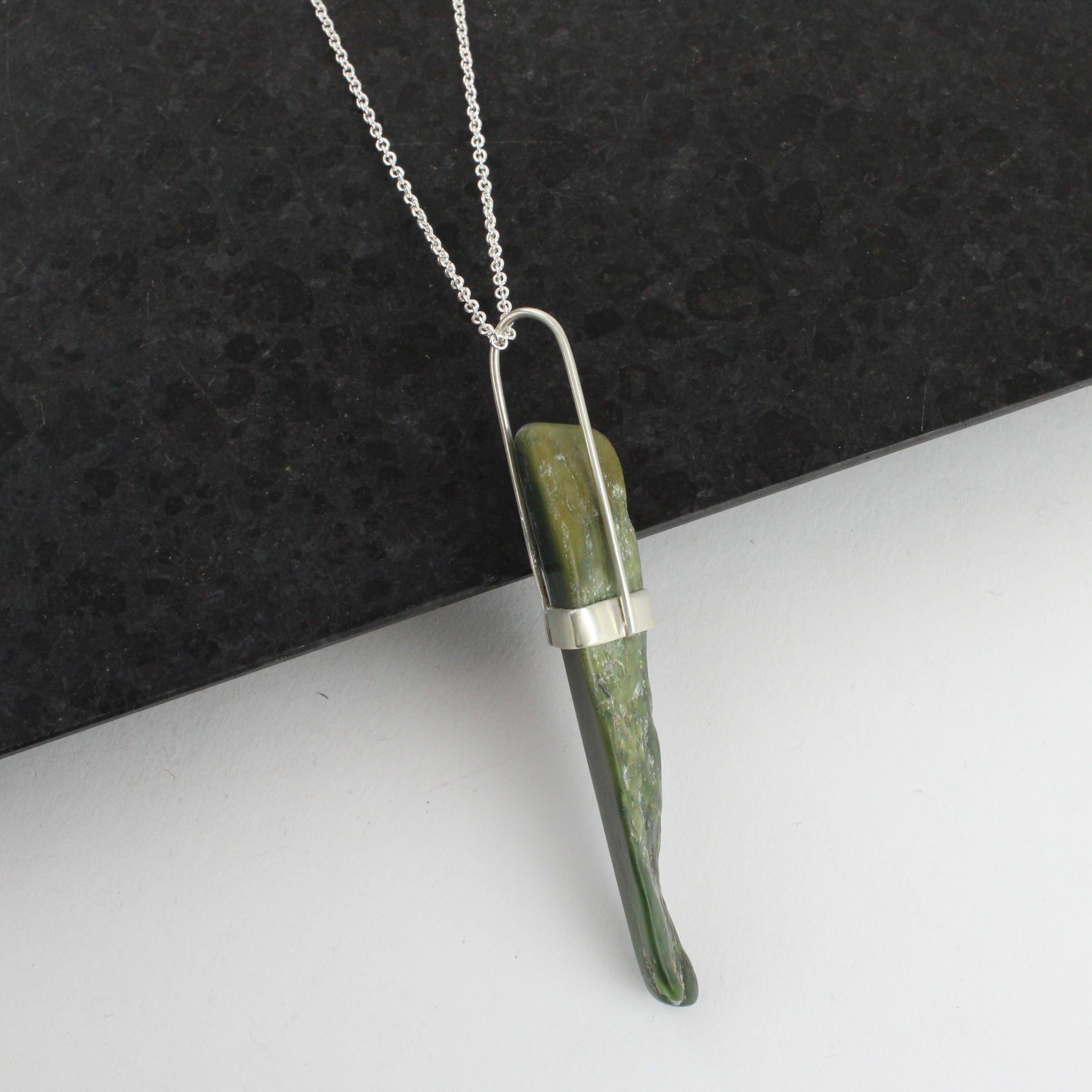 NZ greenstone (60mm length) and sterling silver pendant 73mm total pendant length on a 540mm sterling silver chain