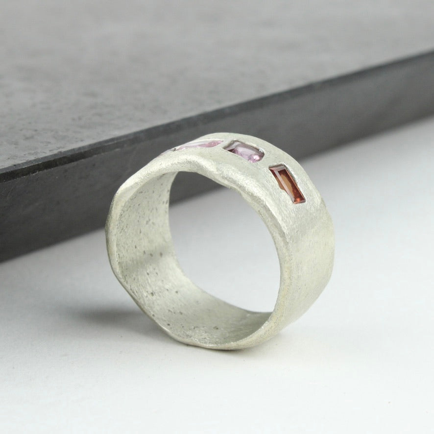 Silver wide band with lab grown sapphires