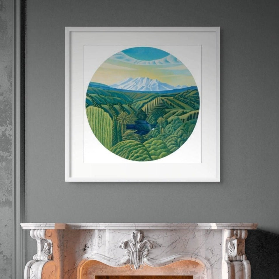 Framed white frame: Image: 450mm diameter in a 615mm x 615mm white frame