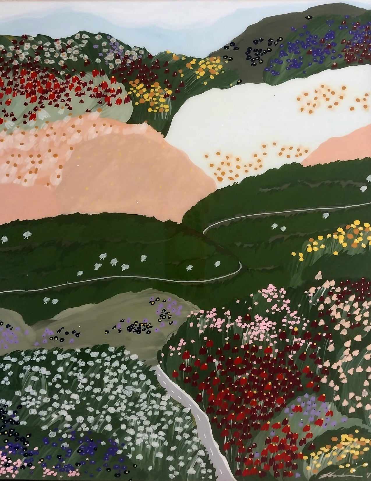 'I have been working on during 2023/2024. This painting is inspired by all the wonderful hillside wild flowers we have here in New Zealand.' - Tracy Watson