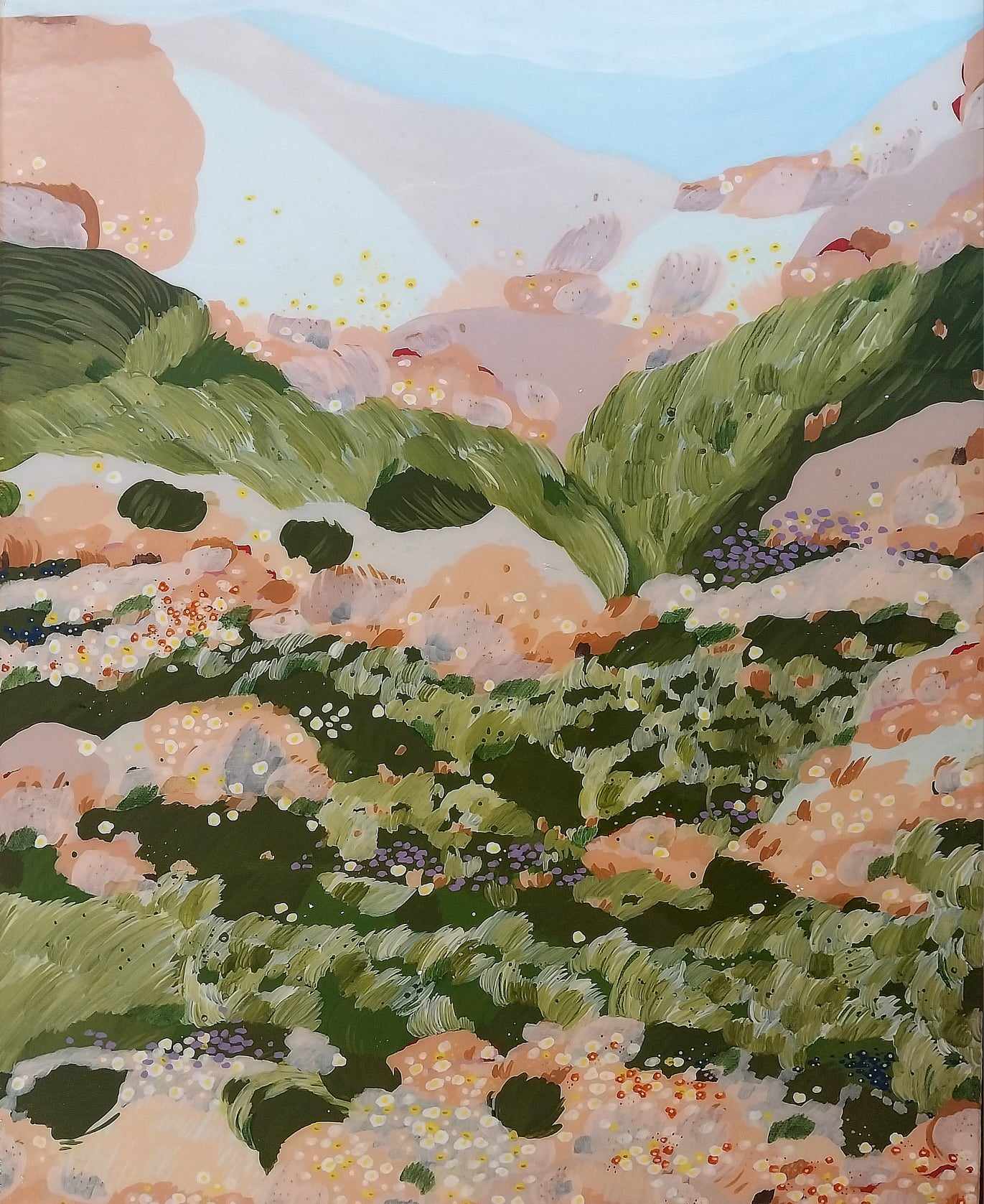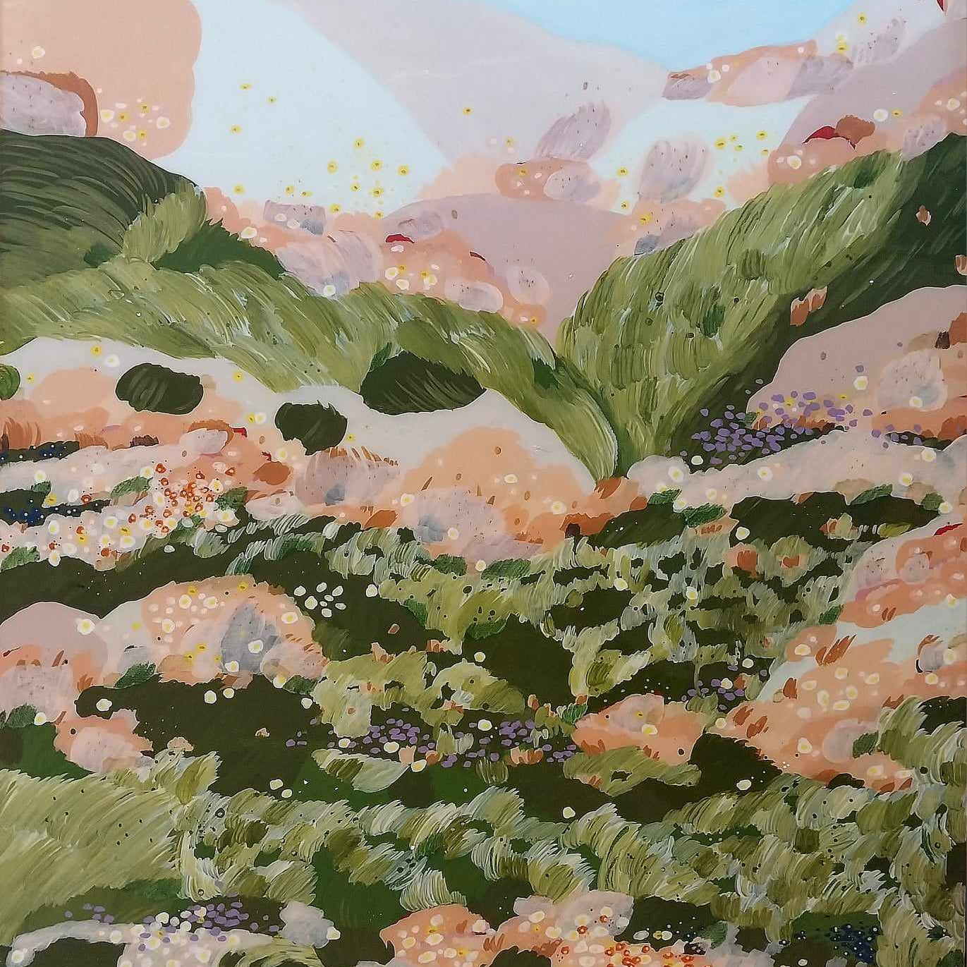 'I have been working on during 2023/2024. This painting is inspired by all the wonderful hillside wild flowers we have here in New Zealand.' - Tracy Watson