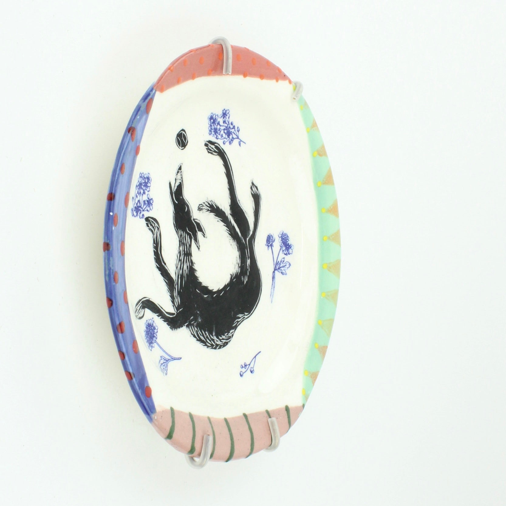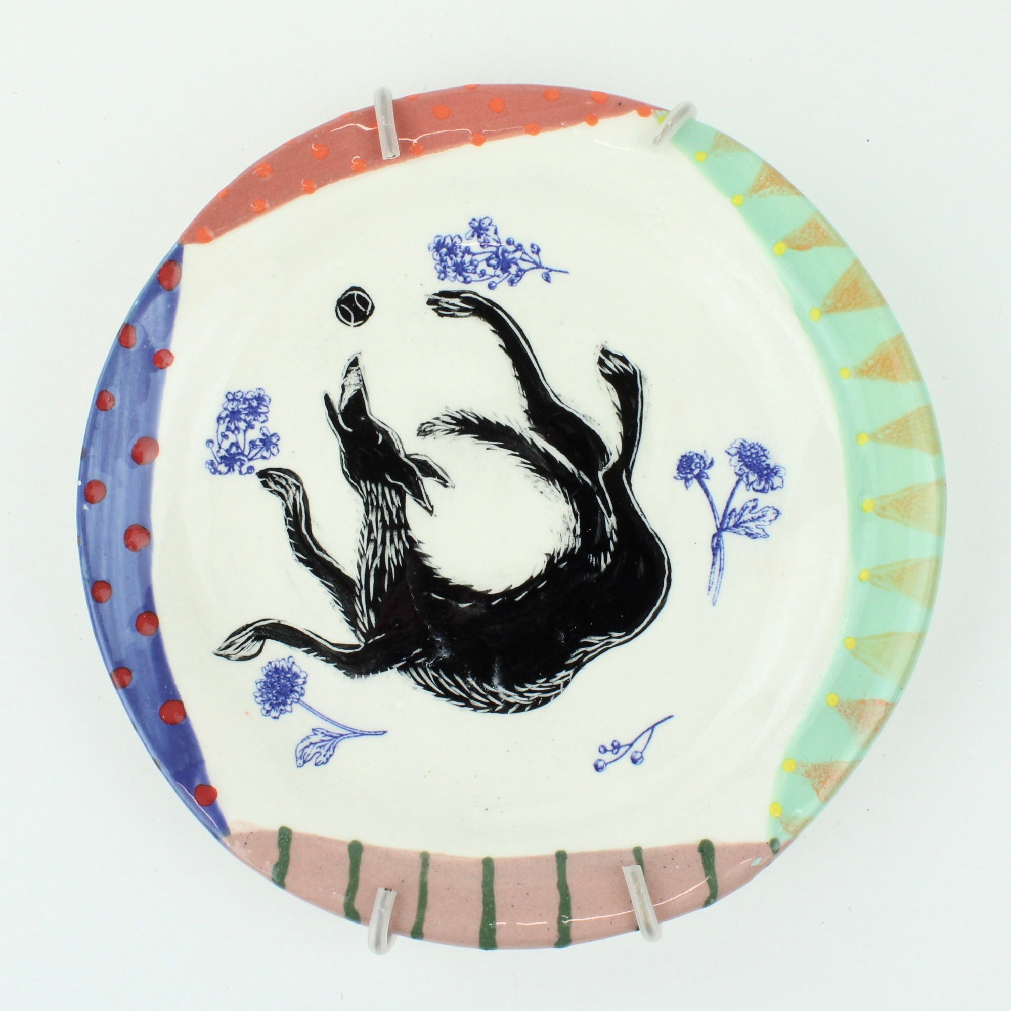 Helen Perrett creates ceramic works with a gently fantastical, narrative quality. Drawing on literature, mythology, and the charm of children’s book illustration, her pieces reflect her love of travel, language, art history, animals, gardening, and reading, woven together in playful, illustrative form.
