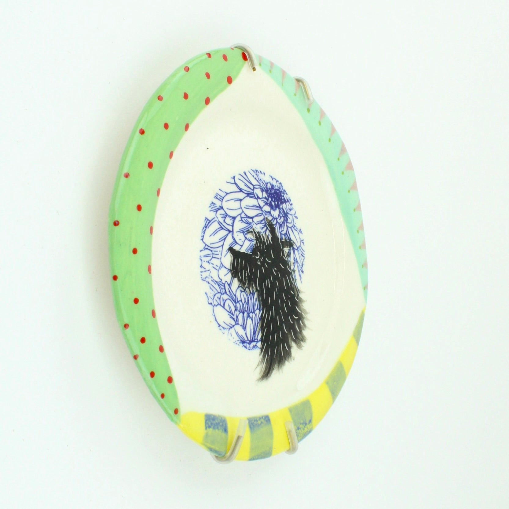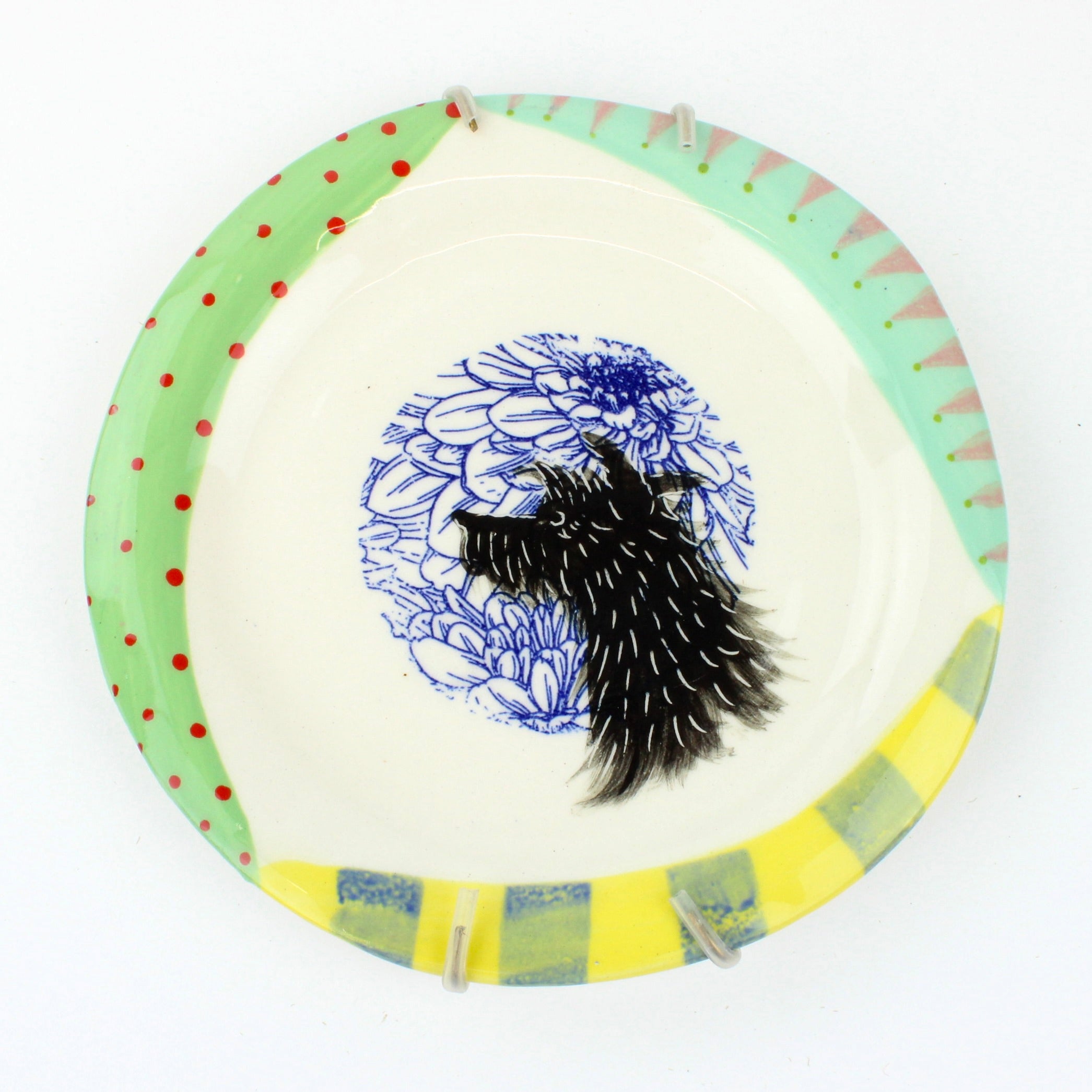 Helen Perrett creates ceramic works with a gently fantastical, narrative quality. Drawing on literature, mythology, and the charm of children’s book illustration, her pieces reflect her love of travel, language, art history, animals, gardening, and reading, woven together in playful, illustrative form.
