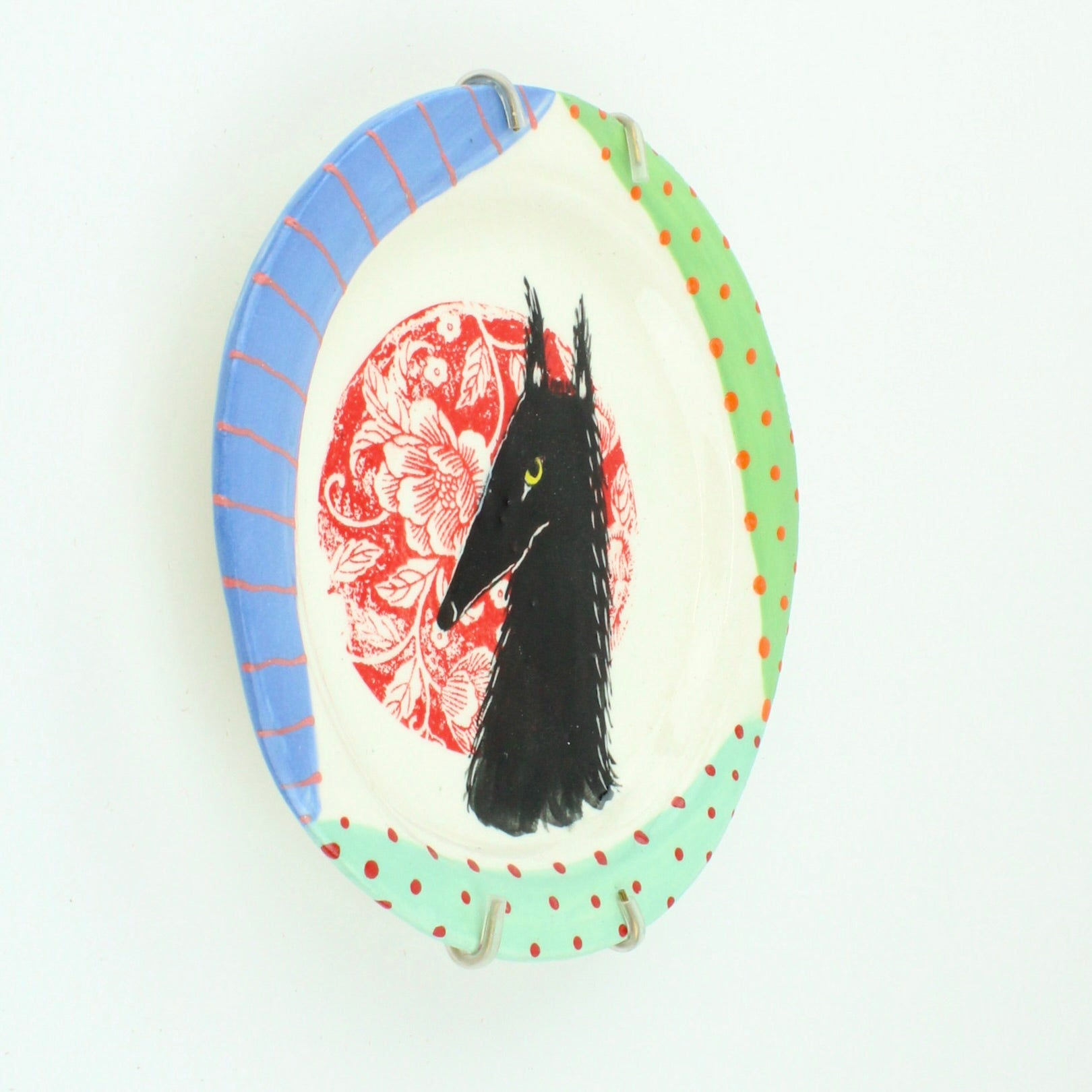 Helen Perrett creates ceramic works with a gently fantastical, narrative quality. Drawing on literature, mythology, and the charm of children’s book illustration, her pieces reflect her love of travel, language, art history, animals, gardening, and reading, woven together in playful, illustrative form.
