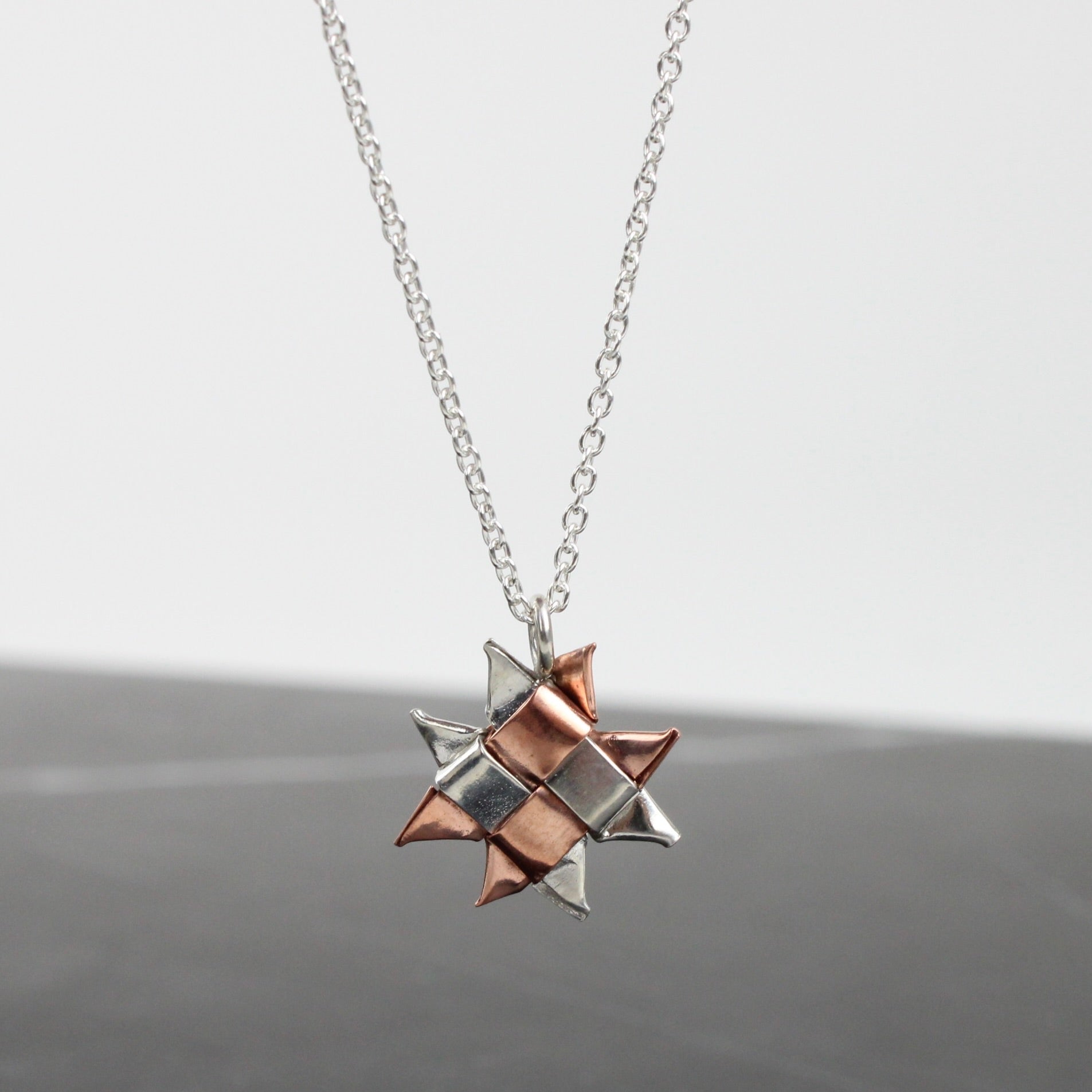 Woven Whetū pendant - copper and silver