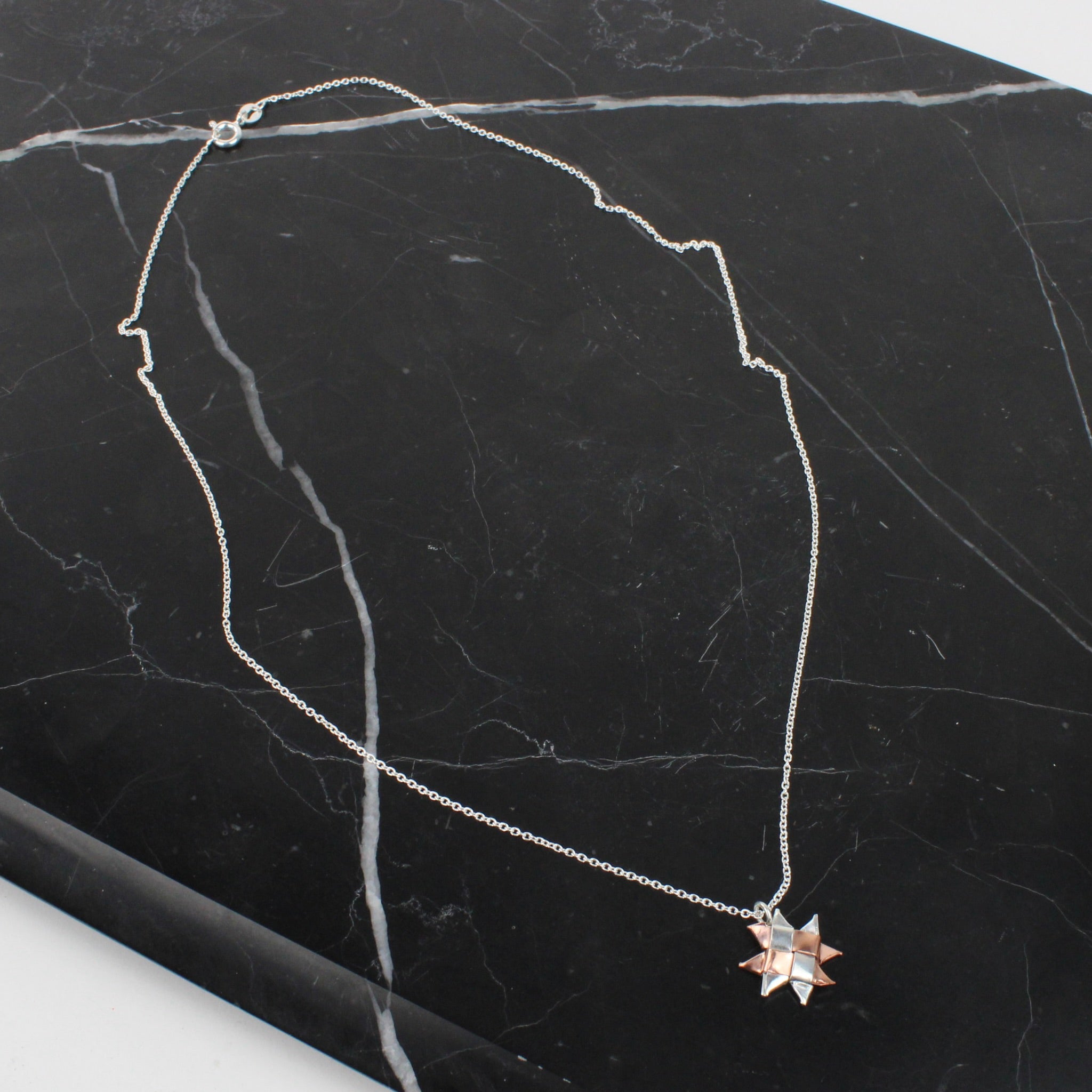 15mm woven whetū (star) pendant on a 500mm sterling silver chain